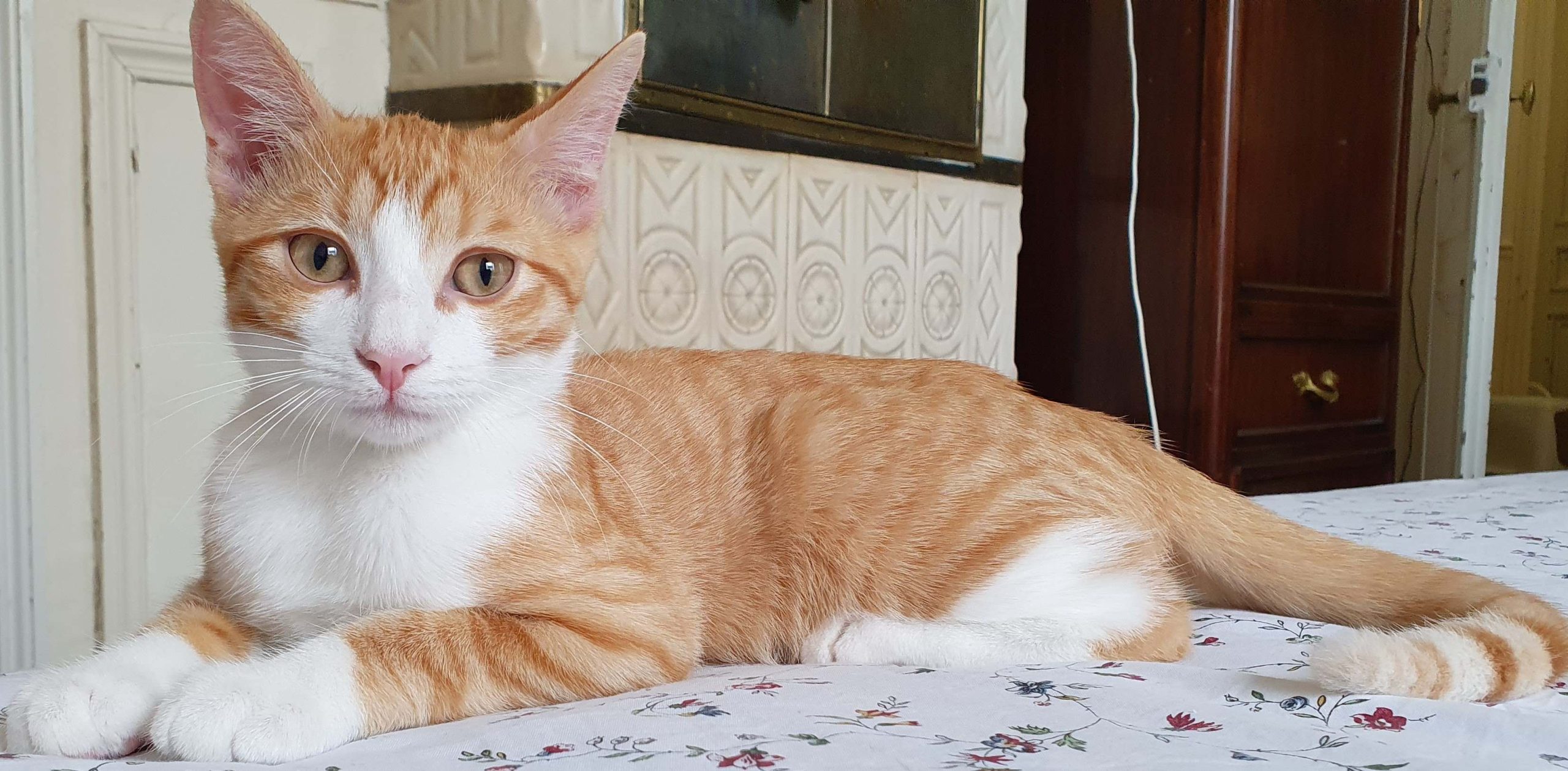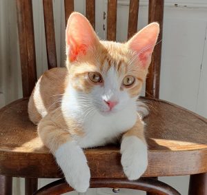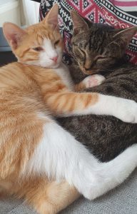 Histoire : Dina, née le 15 mai a perdu son petit frère (roux). Sa maman est Praline (à l’adoption) et Thaïs et Sami ses frère et soeur. Baptiste; né le 20 mai a été trouvé seul bien que sociabilisé. Ce sont donc deux frère et soeur de « coeur » qui se retrouvent ensemble et se complètent parfaitement. Dina est très attachée à Baptiste.