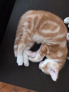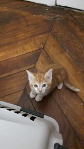 Caractère : Gus est l’incarnation de la « mignonnerie », même si ce néologisme n’existe pas ! C’est un adorable chaton, joueur, tendre et affectueux. Il est à l’aise dans son foyer actuel. Il joue, il mange, il dort et il recommence. Il a été trouvé avec sa mère et sa fratrie de 5 chatons. Il est toujours resté auprès de sa mère, ce qui explique qu’il ne soit pas stressé et qu’il évolue très bien. Il est propre, mange pâté et croquettes premier âge. Il ronronne déjà quand on le caresse et tend le cou pour se faire gratouiller.