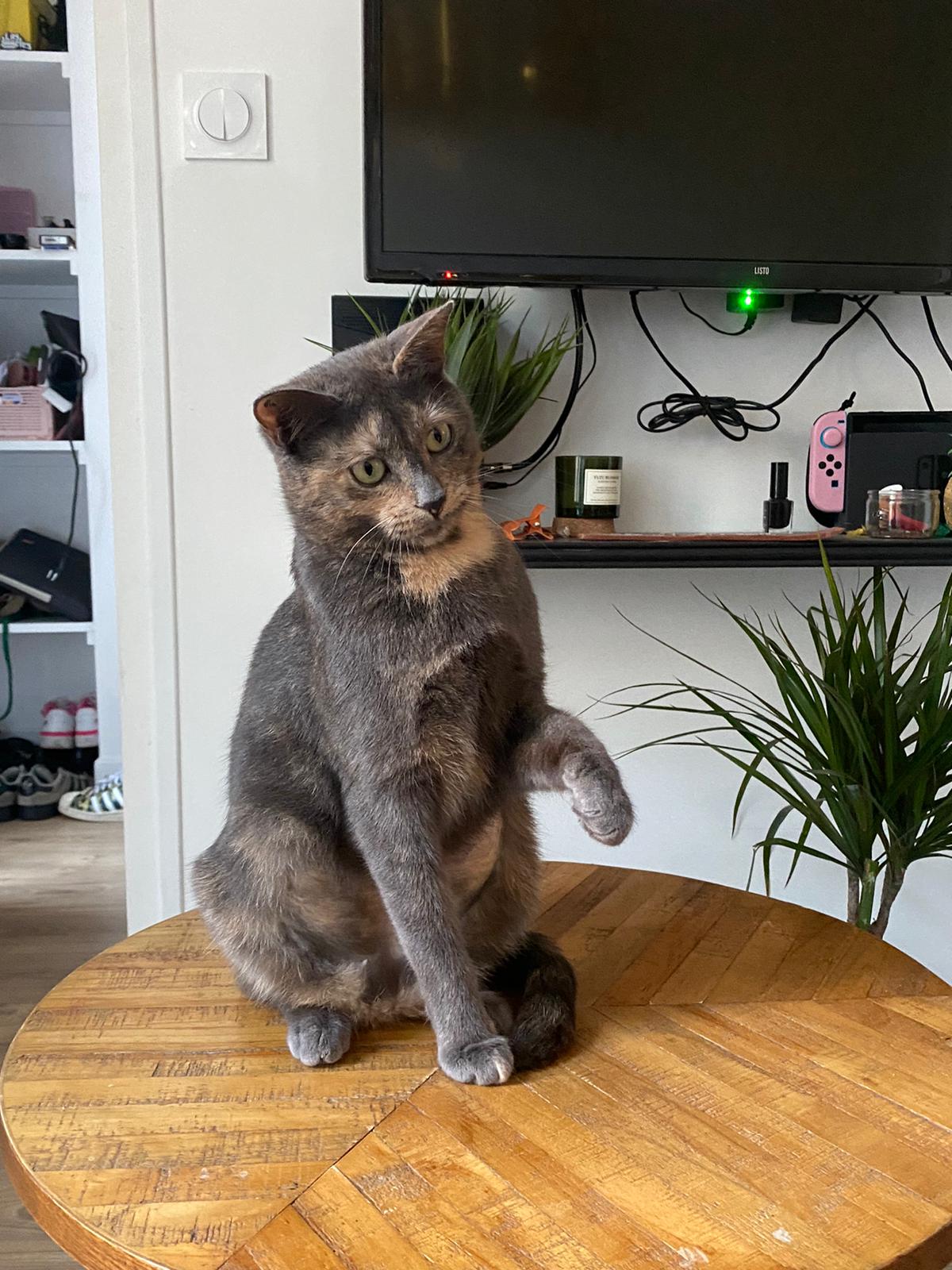 Caractéristiques physiques : Jolie robe écaille de tortue diluée. Testée FeLV et FIV négatif, vaccinée, stérilisée et identifiée par tatouage.