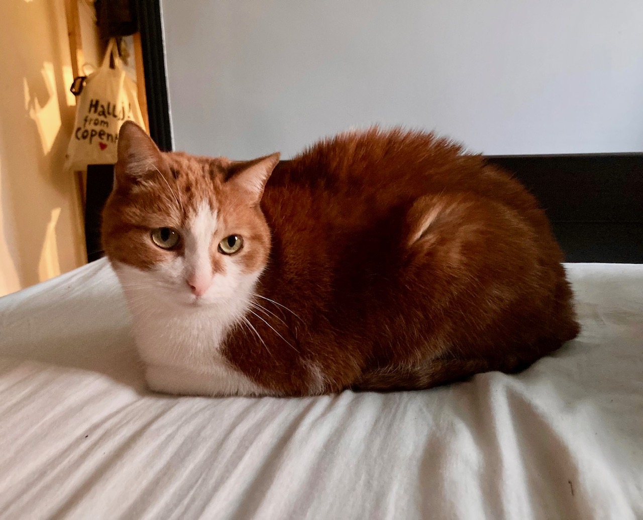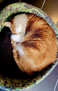 Il adore faire la sieste caché sous les couvertures le jour et dormir au bout du lit la nuit !