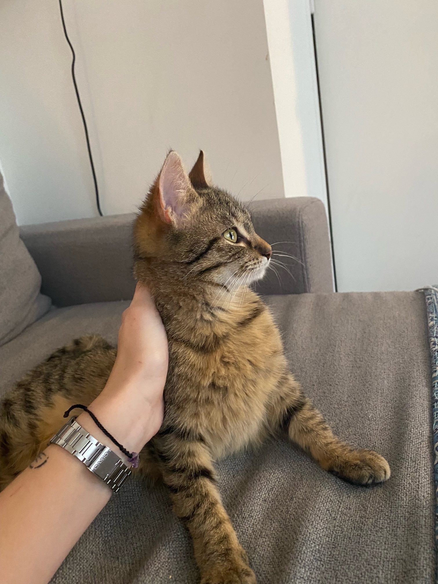 Caractère : Sappho est une adorable minette qui a énormément d’amour et d’affection a donner a sa maitresse/son maitre. C’est une jeune chatte pleine de vie légèrement timide aux premiers abords, mais qui n’hésitera pas un instant a ronronner dès que vous lui gratterez les oreilles. Une fois que vous aurez appris a la connaitre, elle deviendra un véritable pot-de-colle qui vous suivra partout. Très joueuse, il faudra passer du temps a lui lancer des petits jouets, avec lesquels elle peut passer des heures. Impossible de ne pas tomber amoureux (se) lorsqu’on passe 15min avec elle. Ses ronronnements et ses bisous sur le visage y contribueront.