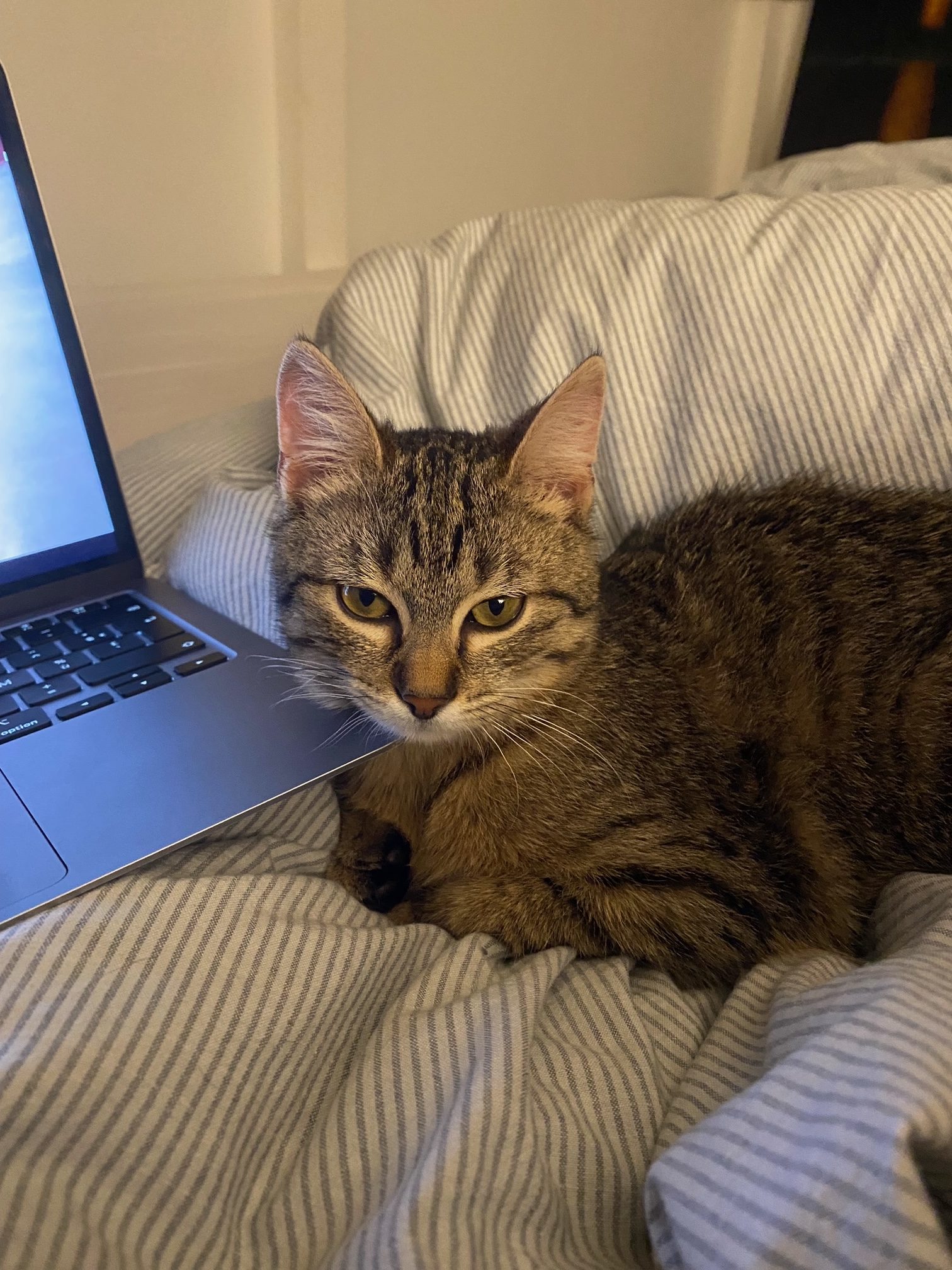 Caractéristiques physiques : joli pelage tigré, yeux verts.