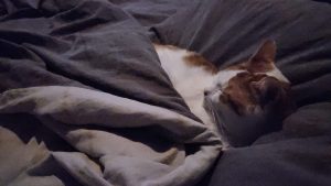 En effet, il n’a fallu que quelques heures pour qu’il réclame des câlins, et il a même dormi entre nous dès le 1er soir, et tous les soirs depuis, il est même capable de me réveiller pour des câlins si je tarde trop à me lever.