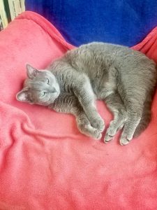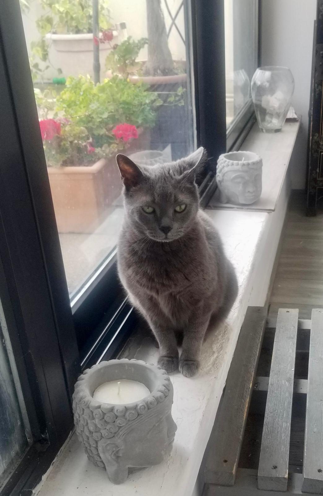 Caractéristiques physiques : Tito est un très beau matou, un peu dodu aux yeux verts et au pelage gris.