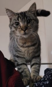 Turquoise est une charmeuse qui aime être le centre d’intérêt et n’a peur de rien, ni bruit, ni aspirateur, ni quand on balaie. Tout l’attire et porte facilement des choses à sa bouche. Faudra être vigilant. Elle courre vite, c’est une petite chatte intelligente qui participe à la vie du foyer.