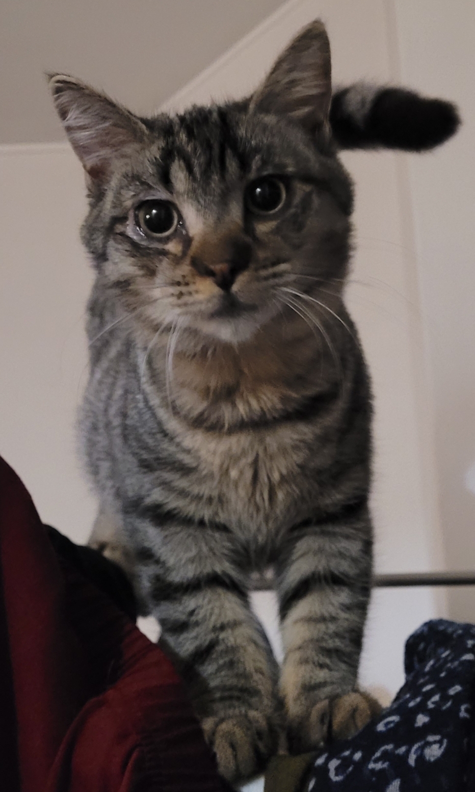 Teddy, lui, est câlin, gentil, plus réservé et calme. Il peut rester un bon moment dans vos bras et adore se poser sur votre poitrine ses pattes avant contre votre visage et mettre sa tête dans votre cou. Pas compliqué, il laisse souvent sa soeur passer devant…