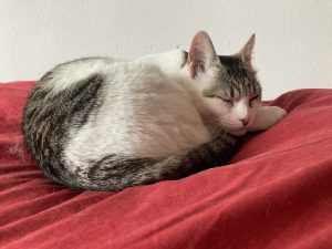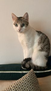 Caractère : Aiko est très mignonne, elle miaule beaucoup pour se faire comprendre ! Elle ne grimpe pas trop sur les meubles, ce qui est appréciable. Elle adore se cacher sous la couette, elle se glisse systématiquement sous les coussins ou sous les draps, ce sont ses cachettes préférées, elle y fait toutes ses siestes.