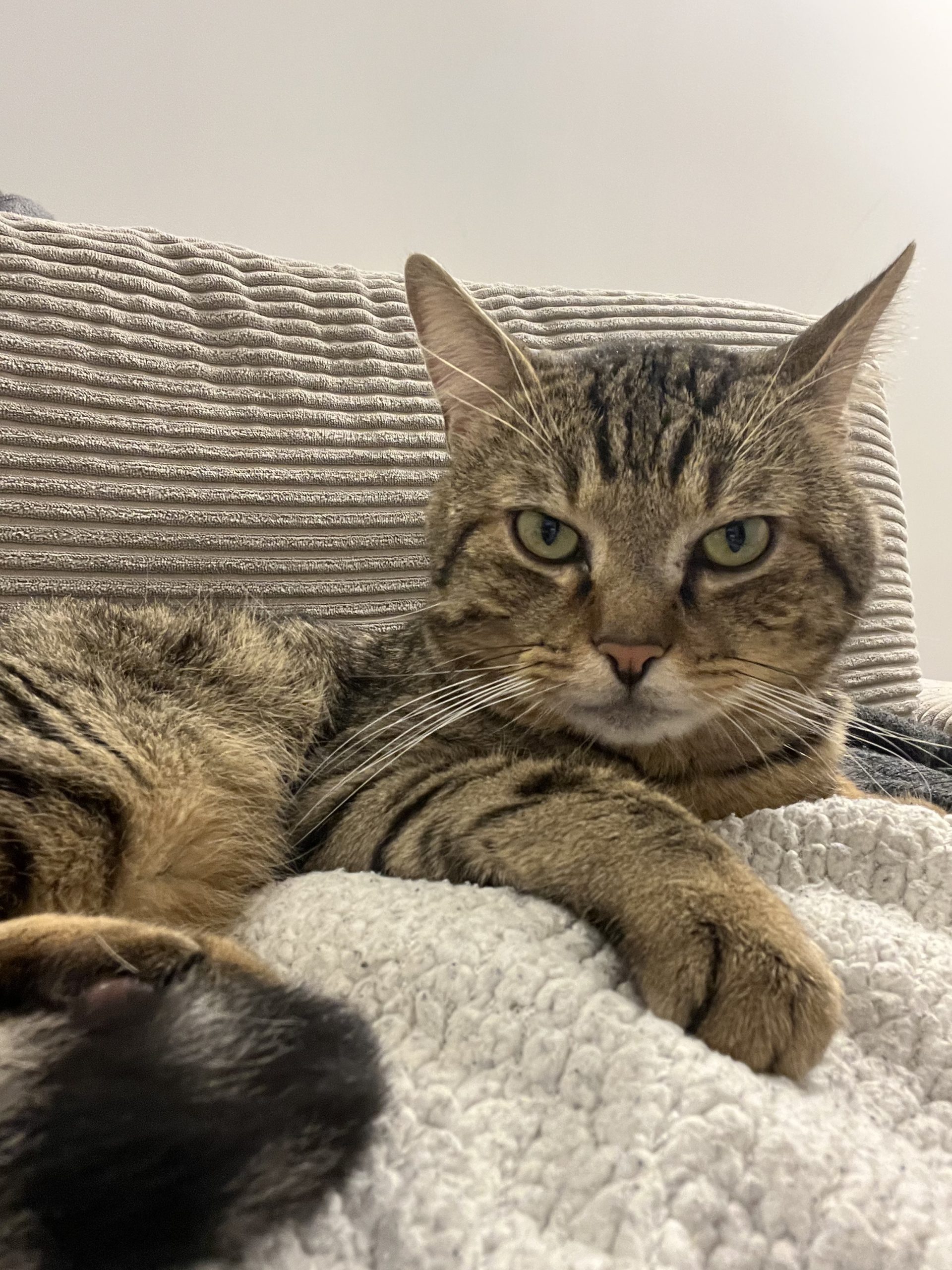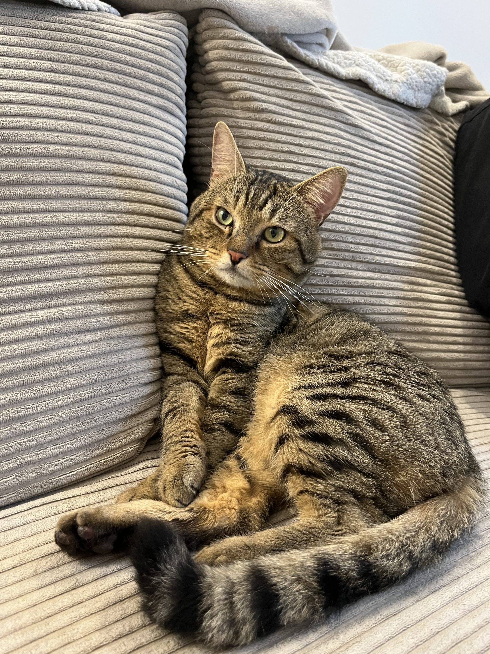 Il sait aussi être indépendant et c’est monsieur qui choisit quand c’est l’heure des câlins, et si ce soir il dort avec nous dans le lit ou bien au chaud tranquillement sur son plaid dans le canapé.
