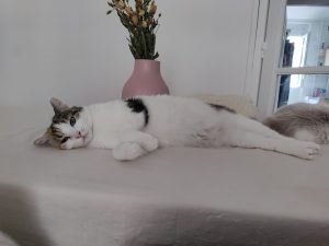 Histoire : confiée à l’association suite à un sauvetage avec son chaton Tchoupi.