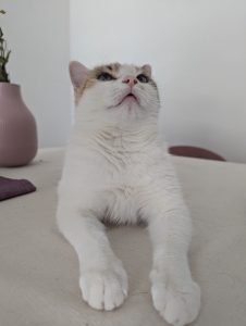 Placement idéal : dans une famille responsable et calme avec de la présence et du temps à lui consacrer pouvant jouer avec elle et lui apporter toute l’affection dont elle a besoin. À adopter seule ou avec un autre chat. Adoptée en décembre 2024.
