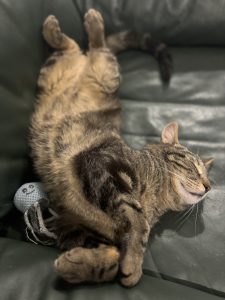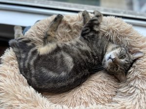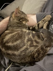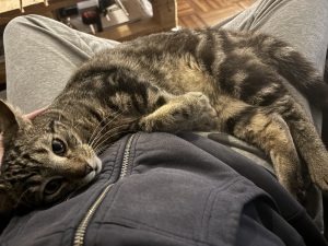 Il aime aussi venir sur les genoux ou juste à côté en ronronnant pour venir faire une petite sieste.