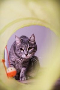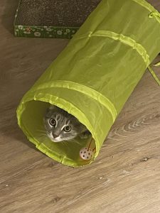 Caractère : malgré les difficultés rencontrées (voir plus bas pour son histoire), Maya est une jeune chatte très curieuse et attachante qui a encore parfois un peu peur de se faire caresser. Sa crainte envers les mains des humains peut entraîner quelques coups de pattes (sans griffe) ou nous mordiller. Elle a pu se montrer peureuse à son arrivée dans la famille d’accueil, mais ses progrès ont été impressionnants. Nous sommes passés d’une chatte timide à de vraies démonstrations d’affection. Que ce soit le soir en rentrant du travail ou le matin au réveil, elle vient se frotter à vos jambes. De plus, elle adore jouer, en particulier avec les plumes ou les ficelles.