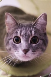 Caractéristiques physiques : Maya est une très belle minette tigrée grise et blanche aux yeux jaunes. Son poil est très doux et soyeux et elle a deux petites lignes blanches au coin des yeux.