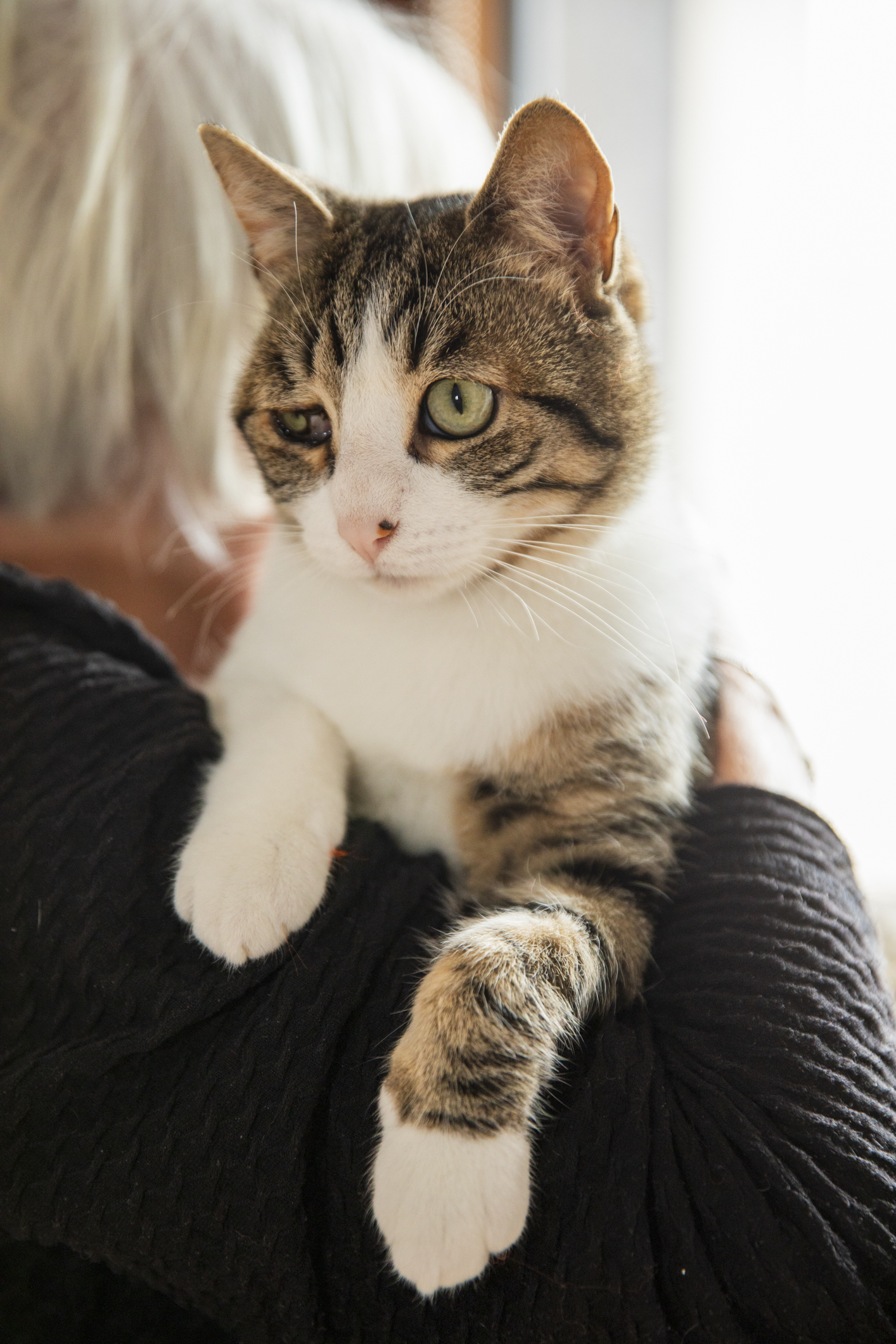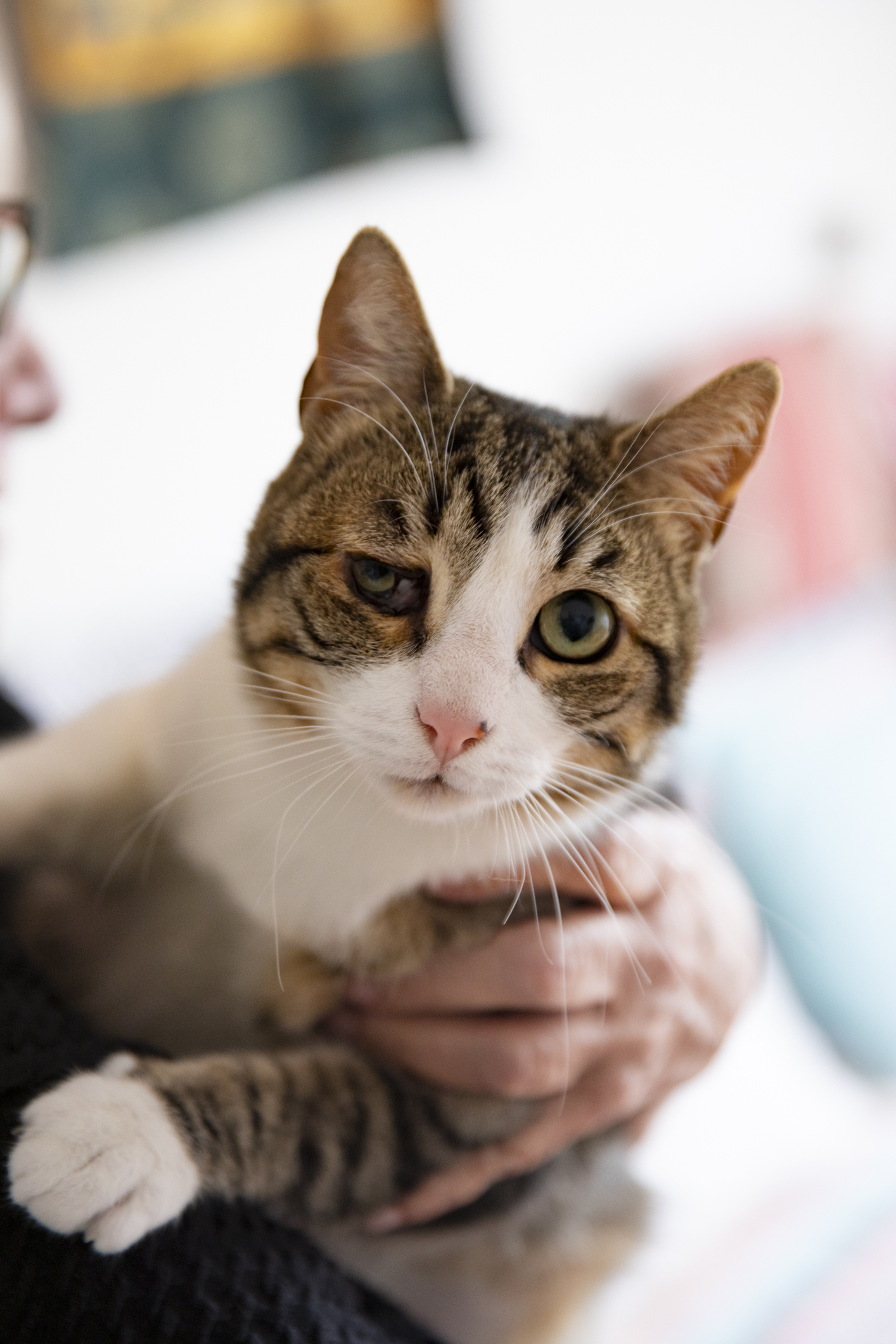 C’est un chat extraordinaire qui a mis son petit handicap de naissance de côté, il n’y pense plus et nous non plus. D’ailleurs, il y voit dans l’absolu des deux yeux, juste moins bien de l’œil droit. Il n’a qu’un comprimé à prendre tous les trois jours pour continuer à être en bonne santé.
