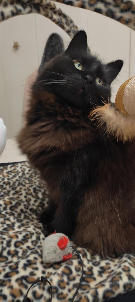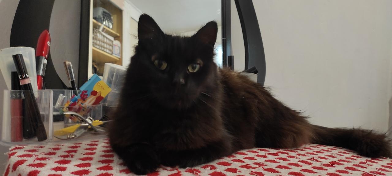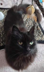Sociable avec les autres chats, elle est contente d’avoir un partenaire de jeu. Car elle se révèle infatigable quand il s’agit de jouer, sa deuxième activité préférée après dormir comme tout chat qui se respecte ! Elle sait venir vous chercher pour jouer ou pour manger, en s’exprimant par de petits babillements qui vous feront jurer qu’elle parle. Elle sait également venir vous chercher pour des séances de câlins, qu’elle affectionne particulièrement.