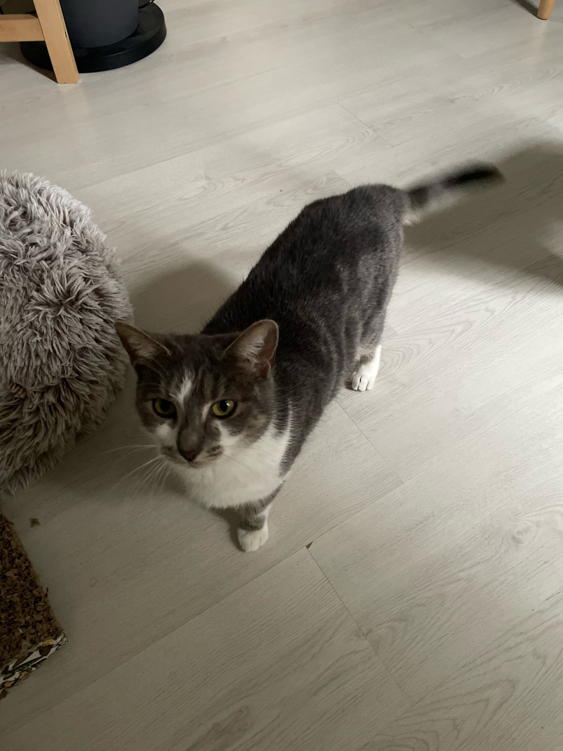 Caractéristiques physiques : beau pelage gris et blanc.