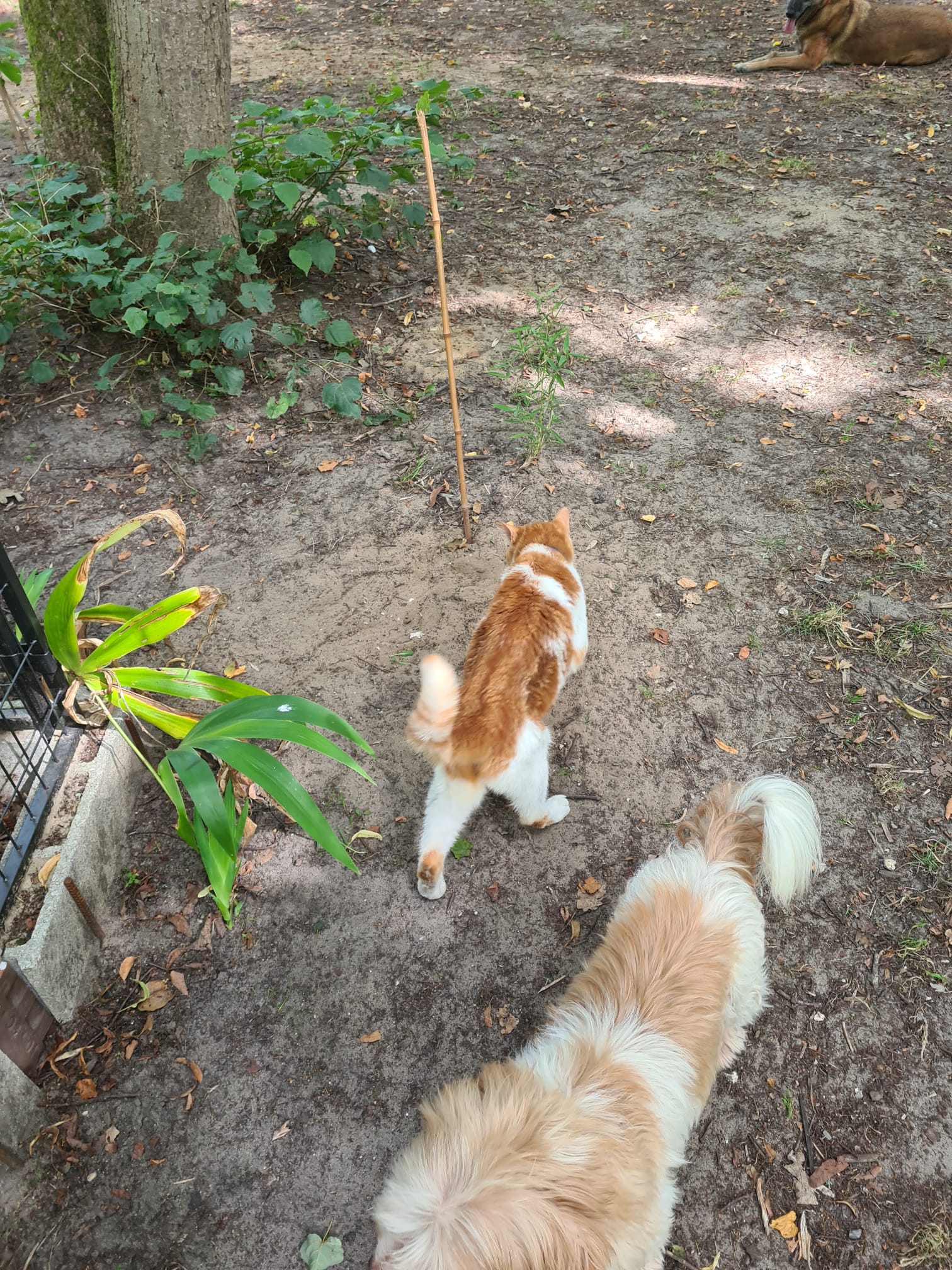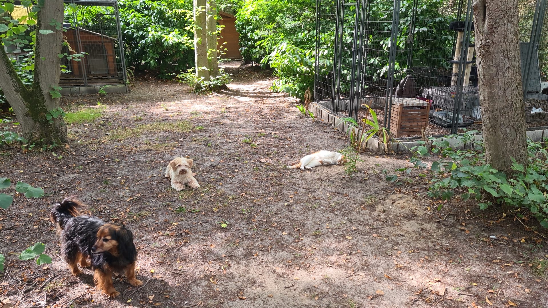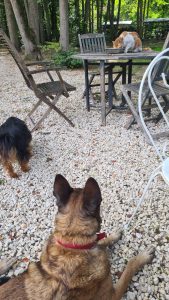Étonnamment, Ikki s’entend mieux avec les chiens qu’avec ses congénères. Il aime faire la sieste dans son arbre à chat, mais apprécie parfois dormir dans l’espace réservé aux chiens. Il vit en parfaite osmose avec eux, accepte sans broncher leurs comportements fougueux et parfois même joue aux gros bras. On pourrait dire qu’il a repris du poil de la bête dans ce jardin d’Eden.
