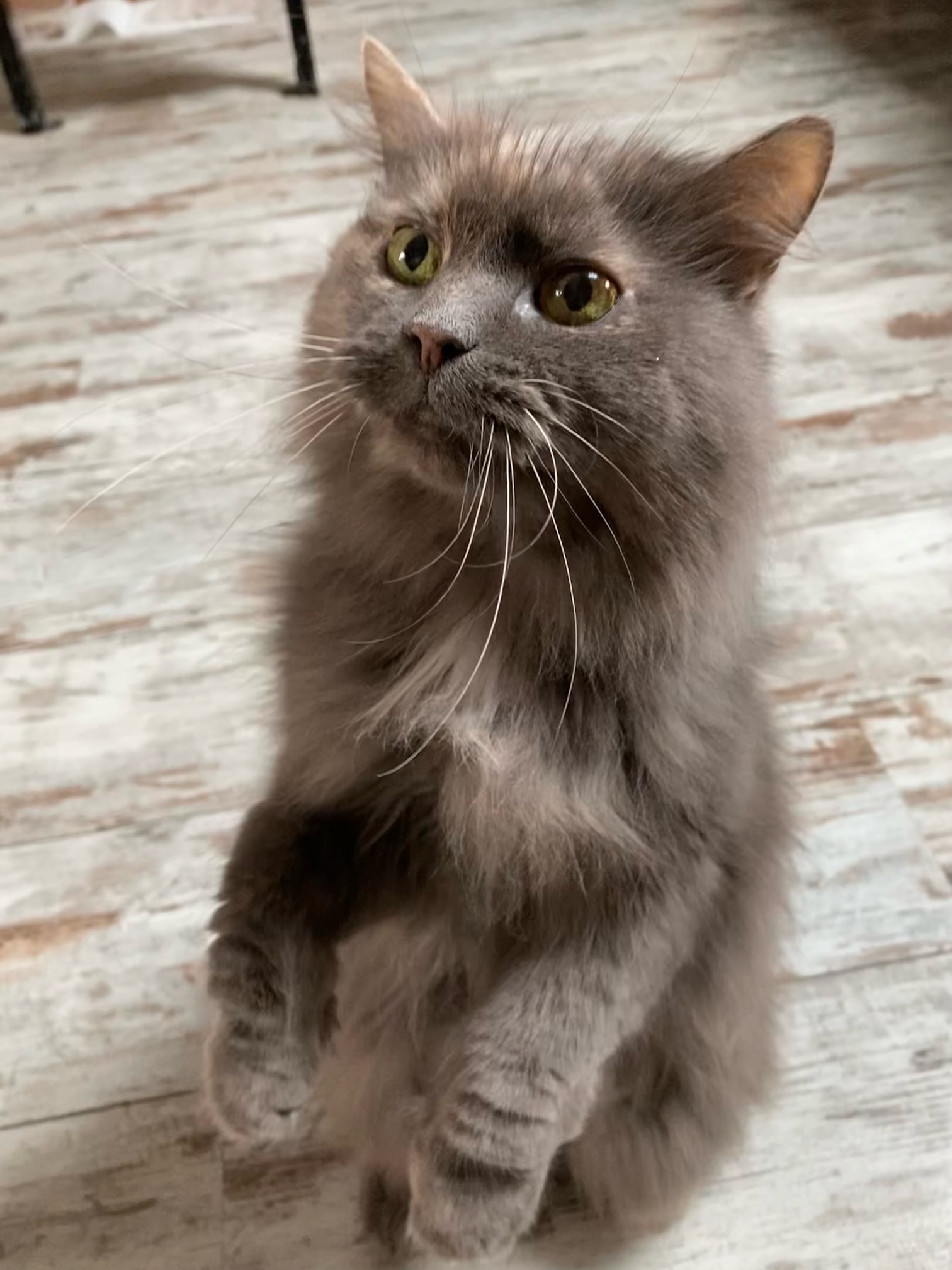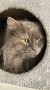 Nephtys est une mamie chat très gentille. Elle a bientôt 18 ans ! Elle doit prendre des médicaments tous les jours pour l’aider à réguler sa thyroïde ainsi que pour traiter un potentiel lymphome. Elle est suivie également par un vétérinaire très régulièrement.