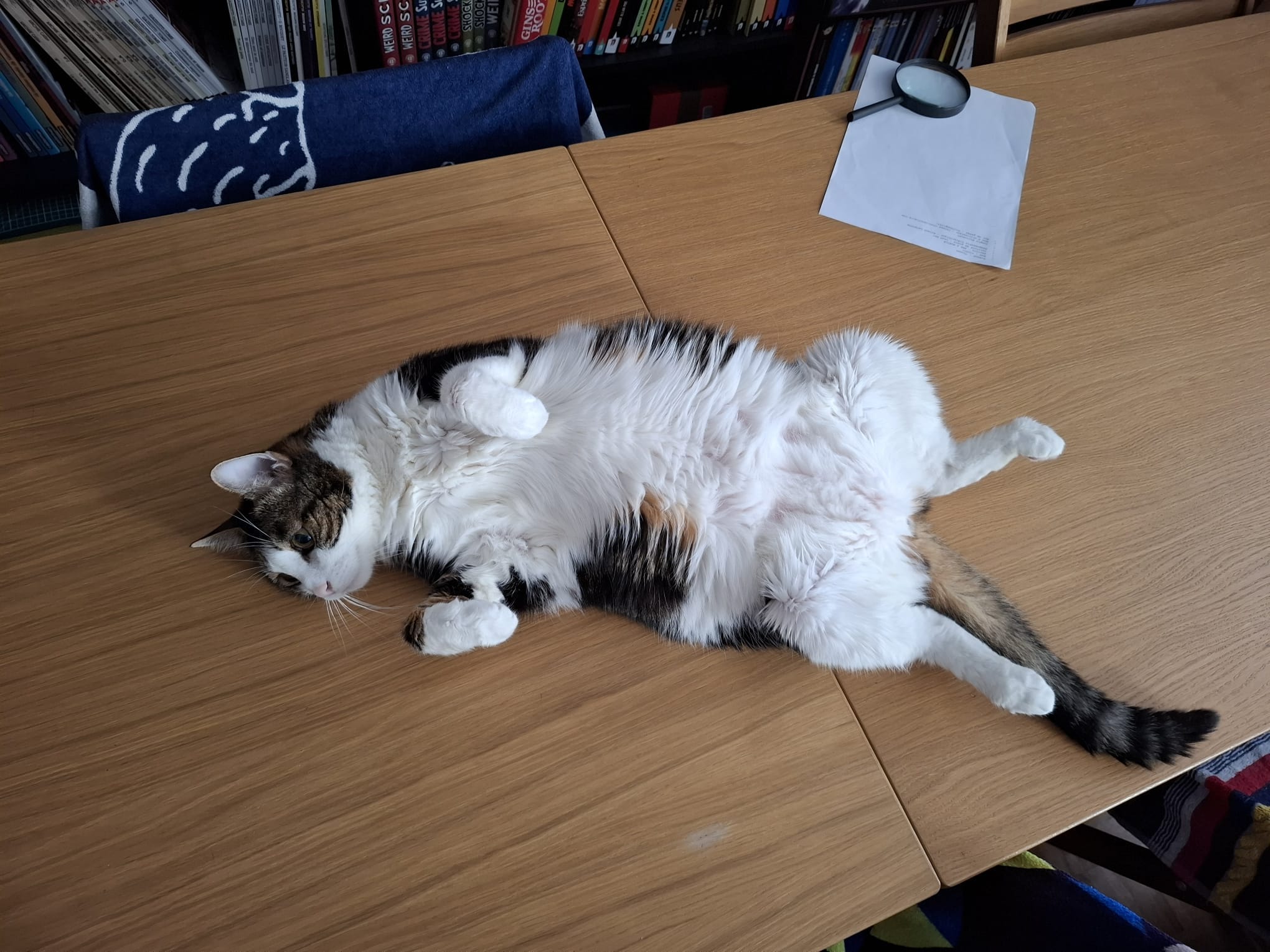 Caractéristiques physiques : Georges est un grand chat tigré et blanc.