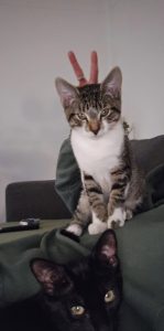 Testés FeLV/ FIV négatif, identifiés, vaccination en cours. Seront stérilisés vers l’âge de 6 mois.