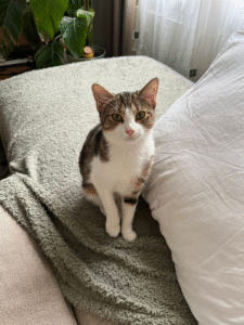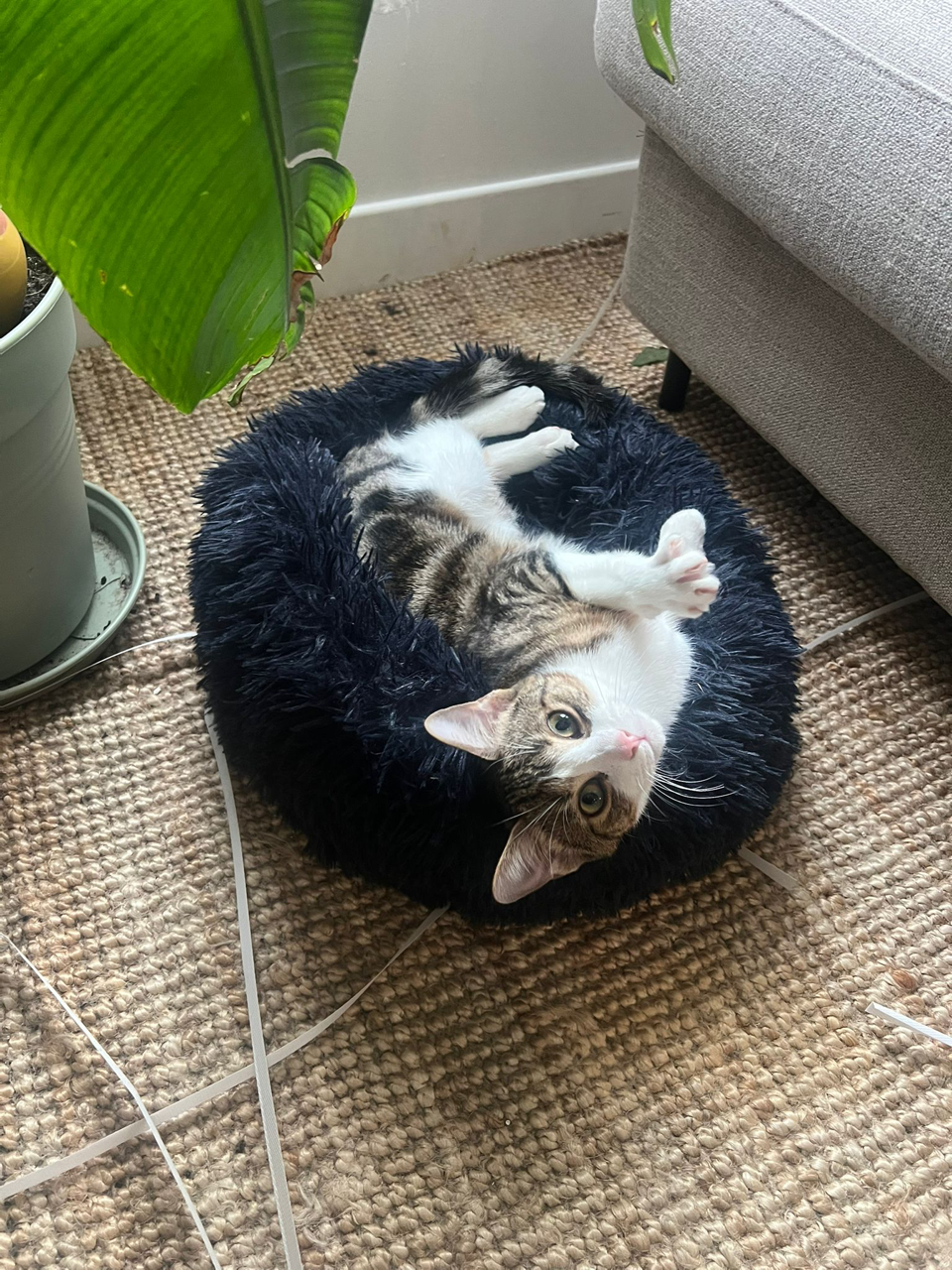 Caractère : Dora est une petite minette adorable. Très timide au début quand elle ne connaît pas son environnement, elle devient câline et très curieuse lorsqu’elle se sent en confiance. Elle est toujours postée à côté de vous pour regarder ce que vous faites et aime explorer son environnement. Elle n’aime en revanche pas trop se faire prendre dans les bras mais vous fera savoir lorsqu’elle a envie de caresses en se roulant à vos pieds. Elle aime aussi se blottir contre vous et se mettre sur vos genoux. Son seul défaut : elle adore les plantes et a eu le temps d’arracher toutes les feuilles qui lui plaisent des plantes de sa famille d’accueil, de renverser et casser des pots à de multiples reprises, et de gratter la terre plusieurs fois… donc penser à de l’herbe à chat pour la distraire et mettre vos plantes hors de portée. A adopter seule ou avec son frère Loki.