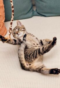 Grande joueuse, elle s’éclate à courir après ses jouets et sait s’occuper seule dans l’appartement. Malgré son énergie de chaton, elle adore aussi les moments cocooning : elle fait de longues siestes bien au calme et dormira toute la nuit avec vous dans le lit.