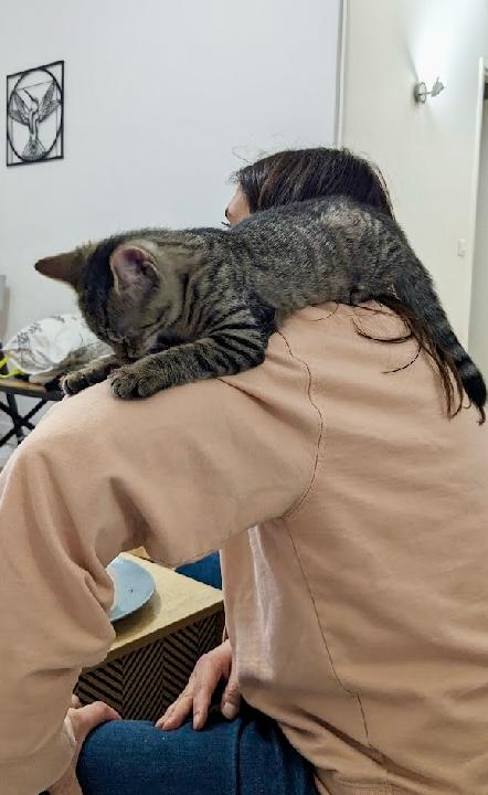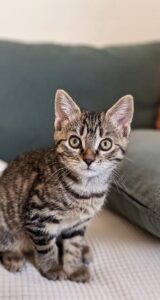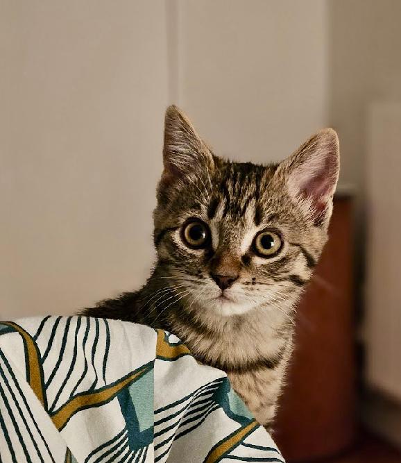 C’est une petite chatonne pleine de vie, joyeuse, curieuse… et incroyablement pot de colle !