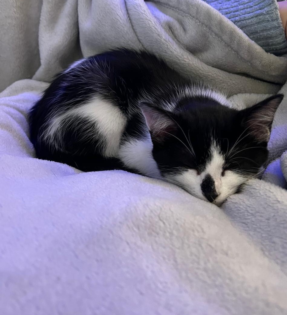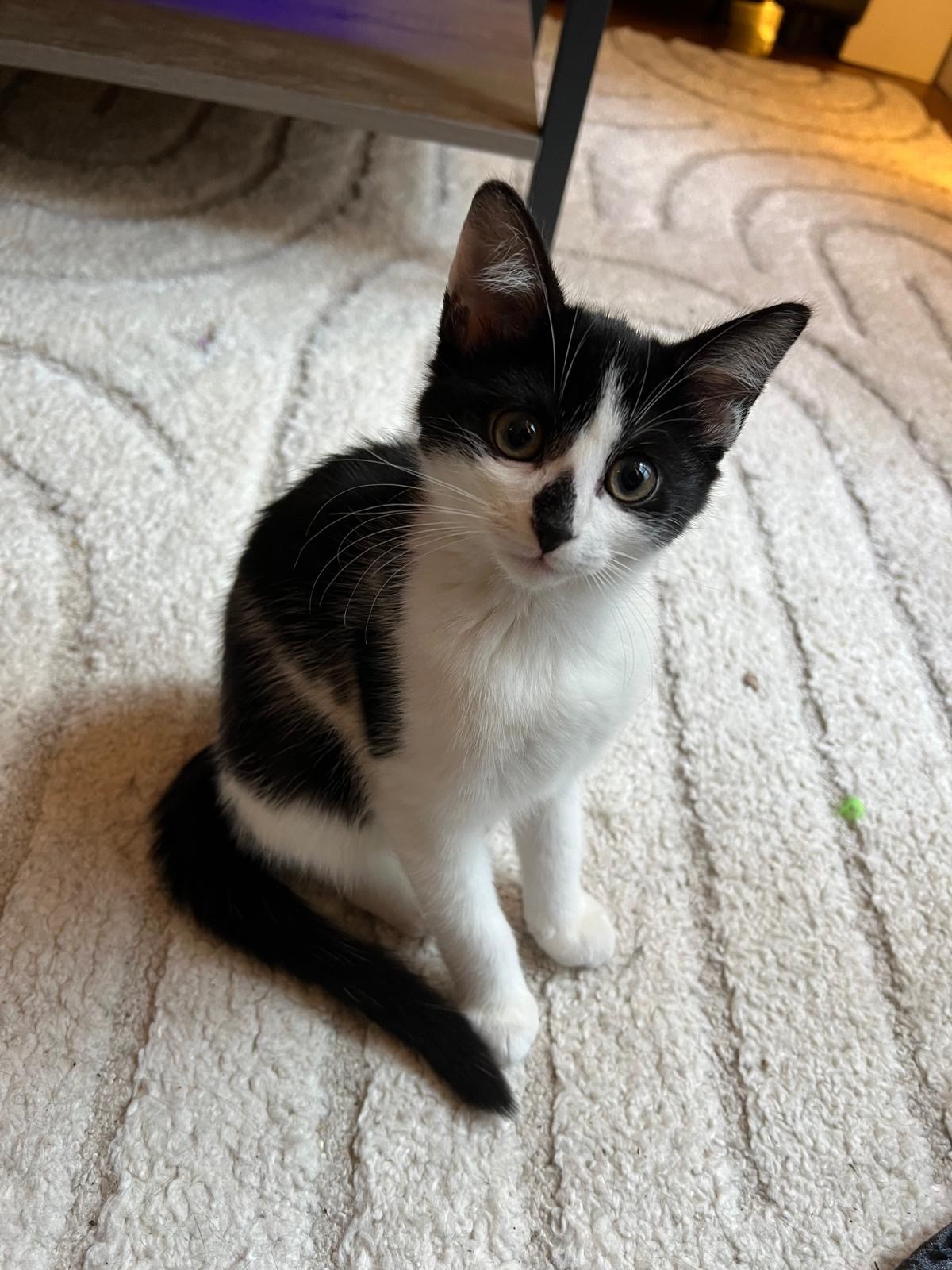 Caractéristiques physiques : belle minette noire et blanche. Identifiée, testée FIV/FelV, vaccination en cours. Sera stérilisée par l’association à l’âge de 6 mois.