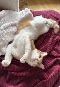 Caractère : Tinky Winky est un véritable concentré de joie de vivre ! Ce bel ado débordant d’énergie est à la fois très joueur et très proche de ses humains… mais à sa manière. Ce n’est pas un chat qu’on manipule ou câline à volonté : c’est lui qui décide quand il veut partager un moment tendre, et quand il choisit de le faire, c’est un pur bonheur. Le soir, lorsque la maison se calme, il adore venir se lover dans votre cou pour un moment de douceur bien à lui.