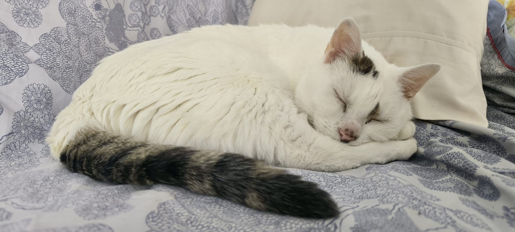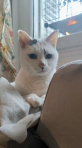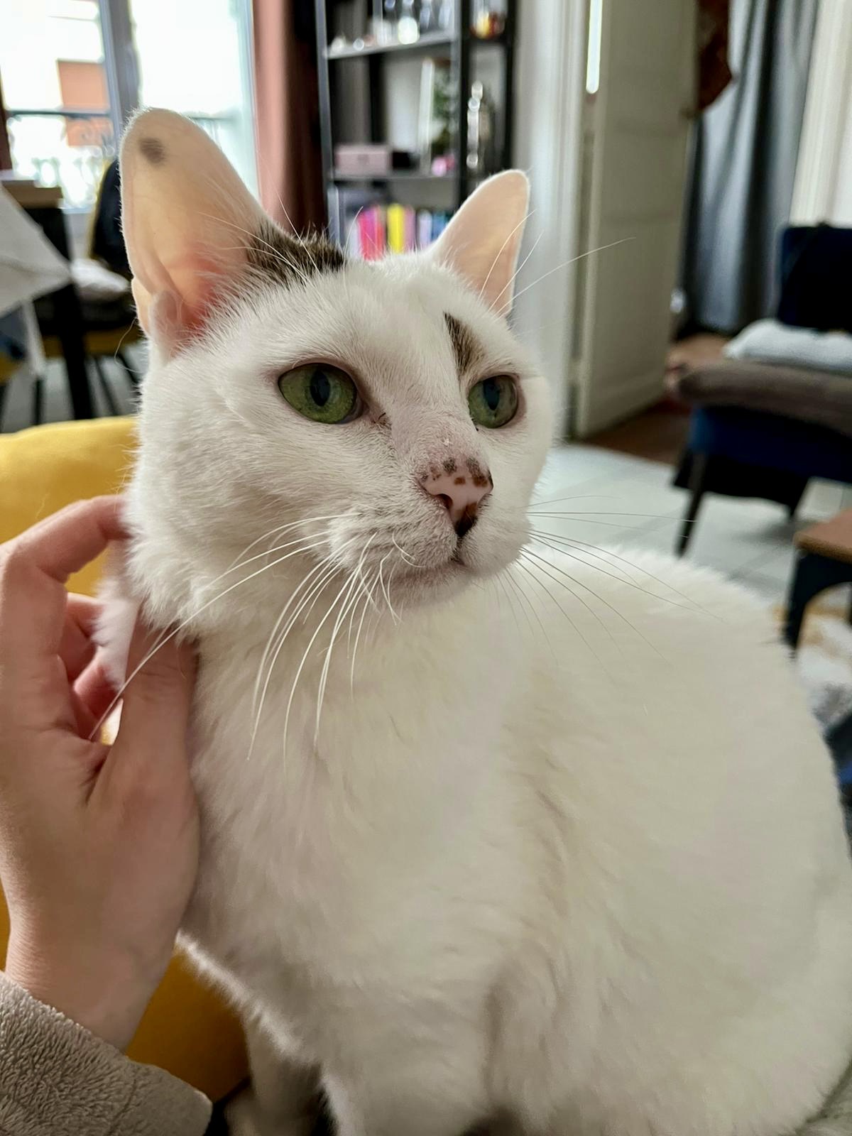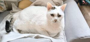 Caractère : Je m’appelle Lenge et je suis un papi-chat ronronneur. A presque 14 ans, c’est moi qui dicte la conduite à tenir parce que j’ai mes habitudes : non, je ne reste pas sur vos genoux, mais si vous aimez les coups de tête, léchouilles et ronrons, dès qu’on s’entend bien, vous aurez votre compte. Et j’aime bien partager mes poils blancs, ils sont mousseux, beaux et tellement doux.