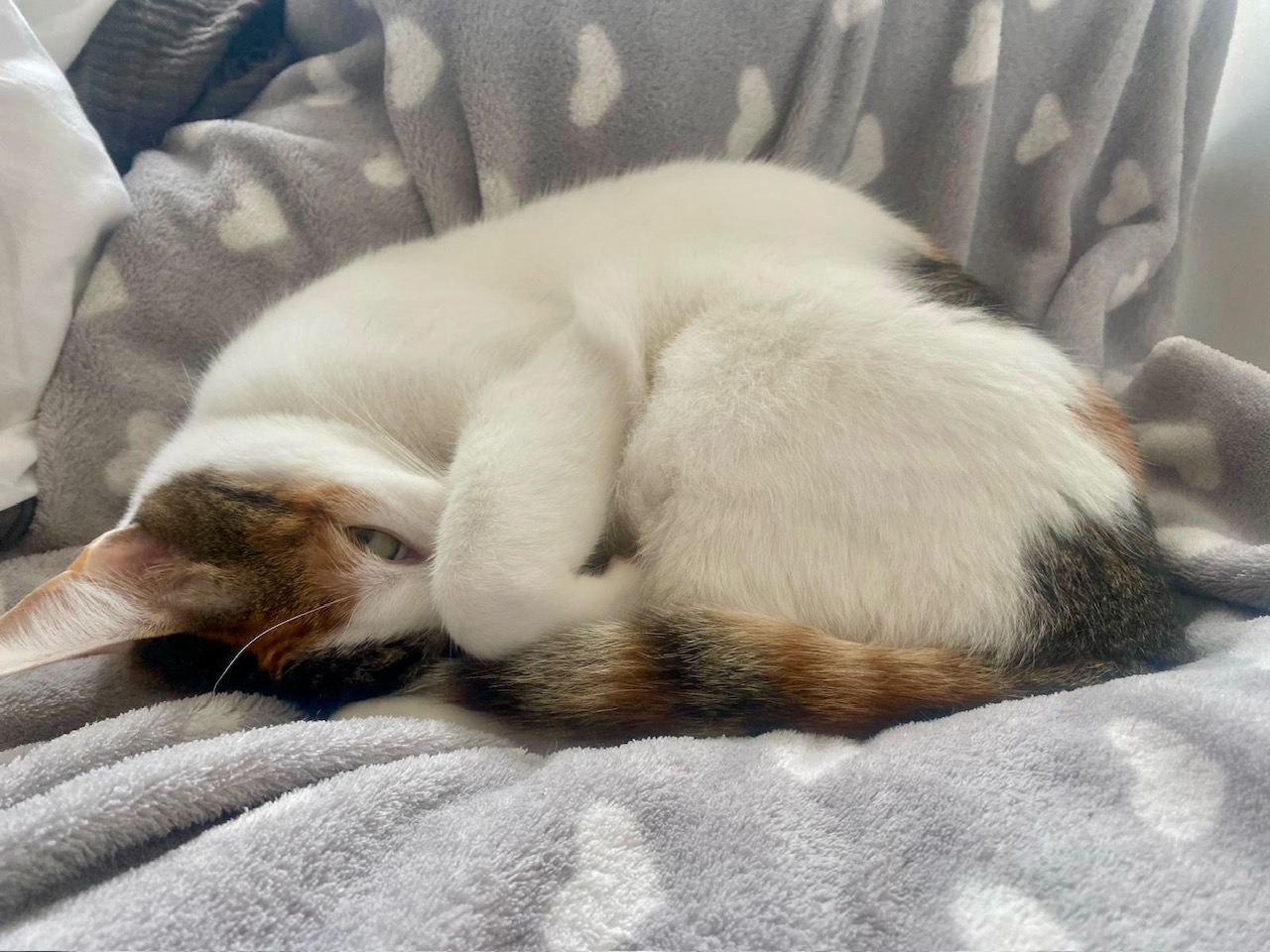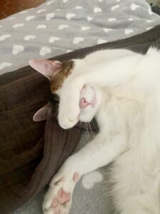 Mais ce qu’elle aime par-dessus tout, c’est le contact humain. Véritable « pot de colle », qui vous suivra partout, elle adore se blottir contre son humain.e, surtout sous les draps, et ne manquera jamais une occasion de réclamer des câlins.