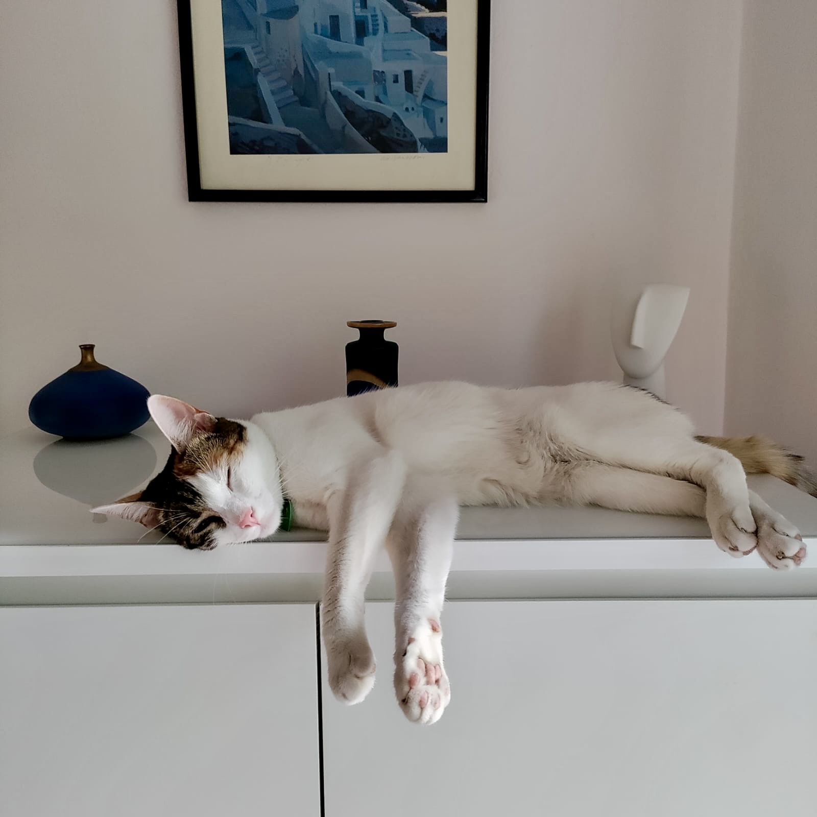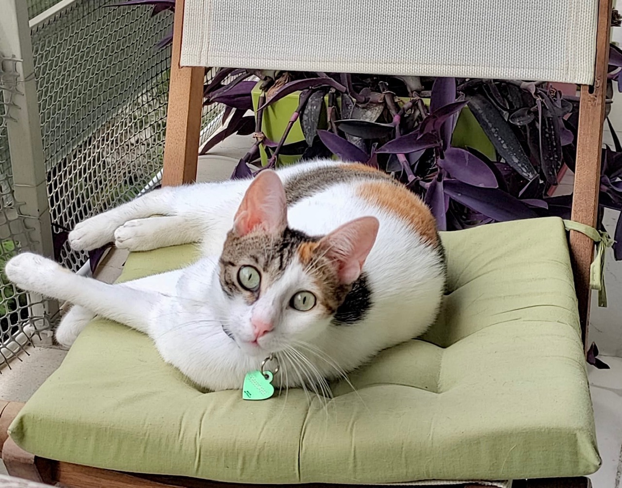 D’un caractère très sociable, une fois arrivée chez nous, elle s’est adaptée avec une grande facilité à son nouvel environnement. Véritable acrobate, elle ne manque jamais une occasion de sauter sur les meubles pour observer le monde et se rapprocher de vous.