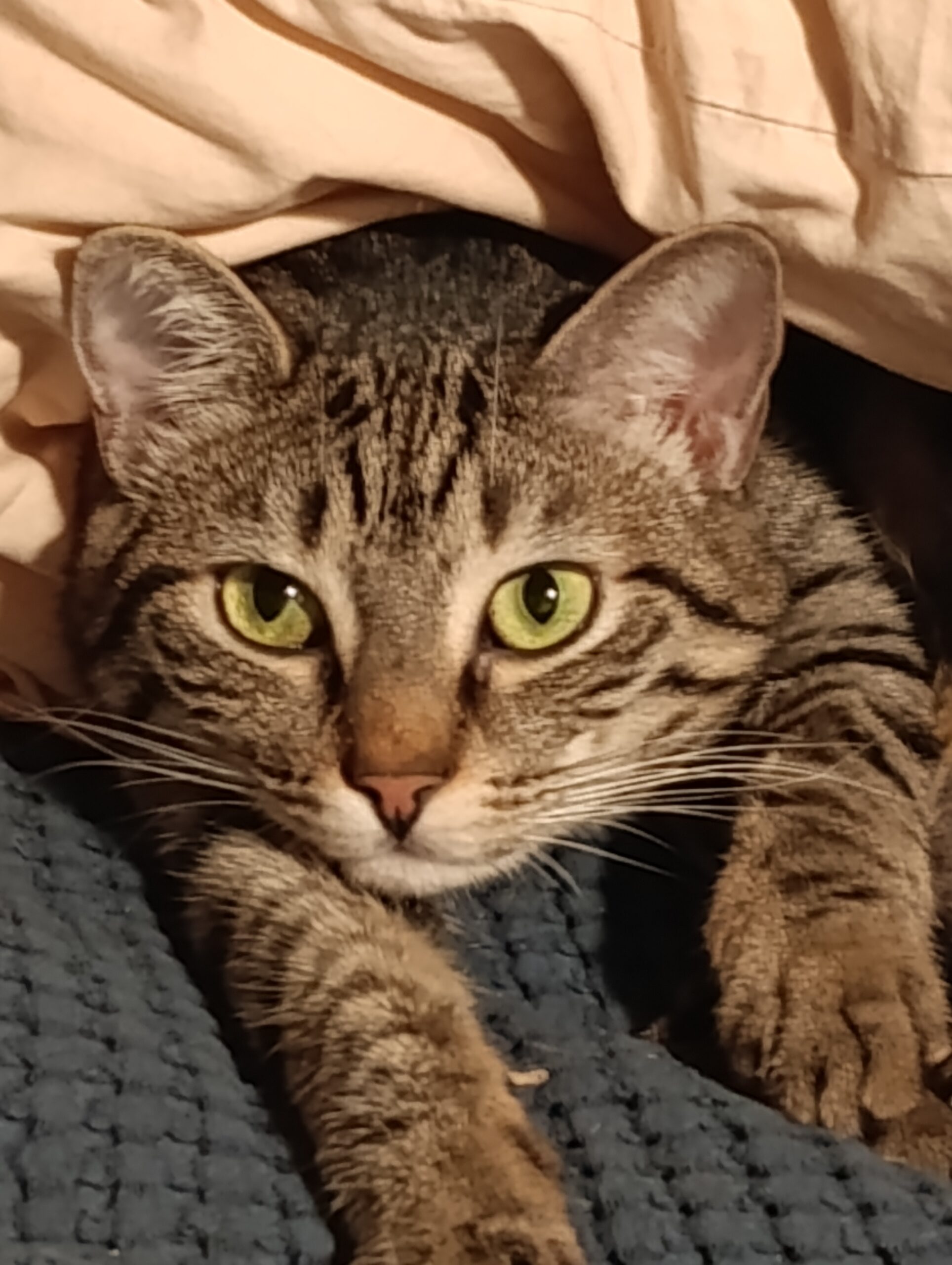 Zoï, robe tigrée, plus foncée que celle de sa frangine, et en rondeur.