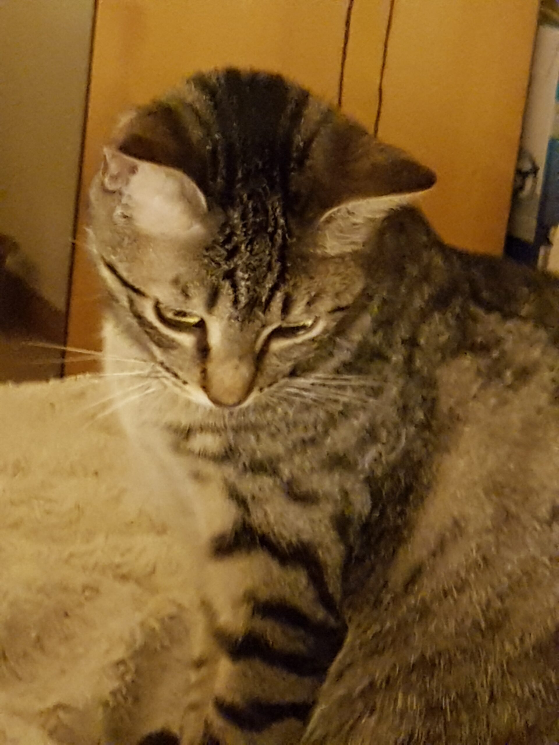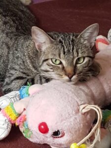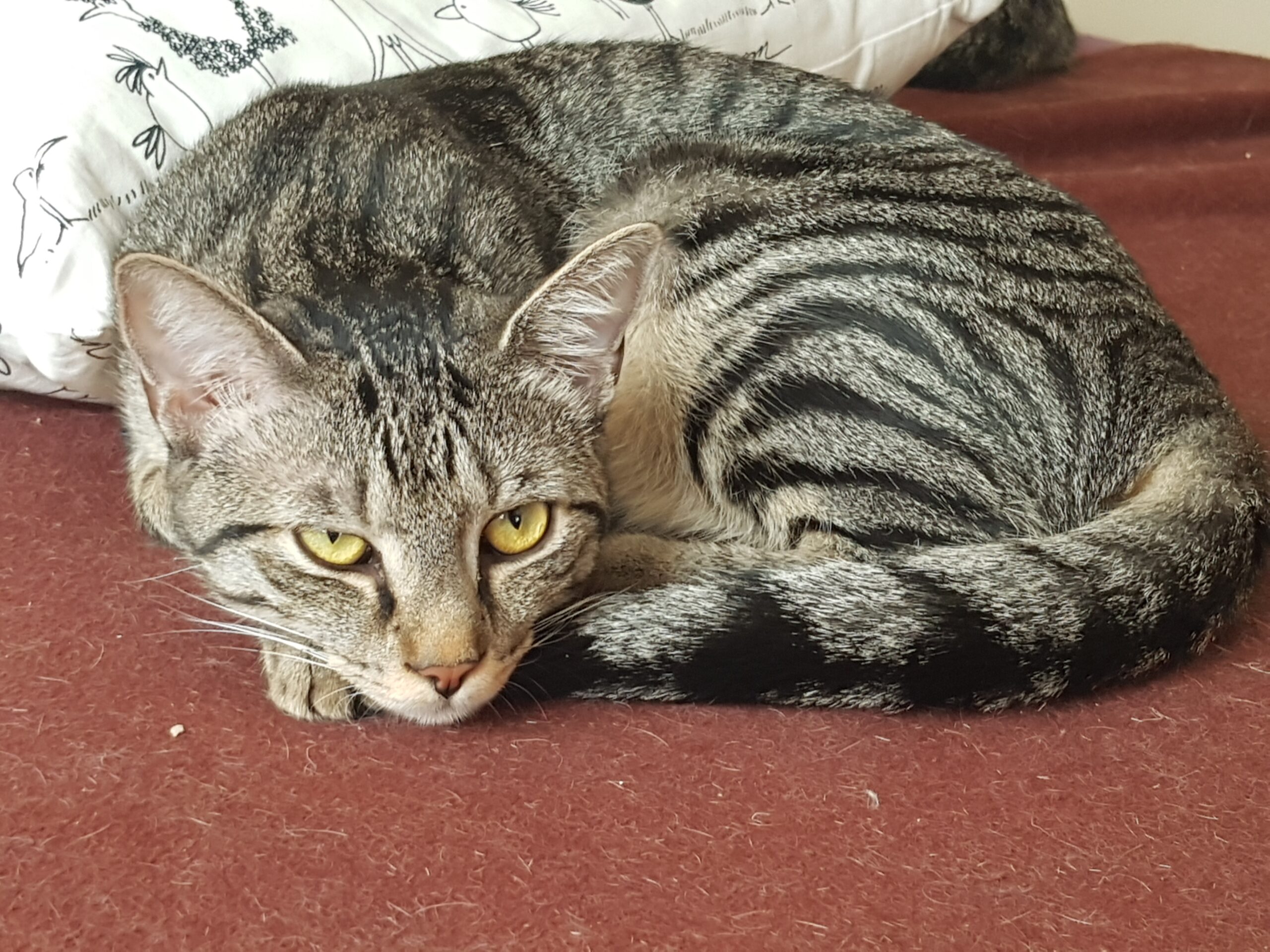 Zoï est une observatrice silencieuse, une contemplative ! Un peu plus timide, elle a une tendance à se cacher, il faut lui porter de l’intérêt, une petite causette pour la rassurer… Elle a ses petites habitudes : début d’après-midi, cachée, puis on la retrouve sur le lit pour une sieste plus confortable. Le soir, elle s’installe, sur le lit, en attendant son hôte.