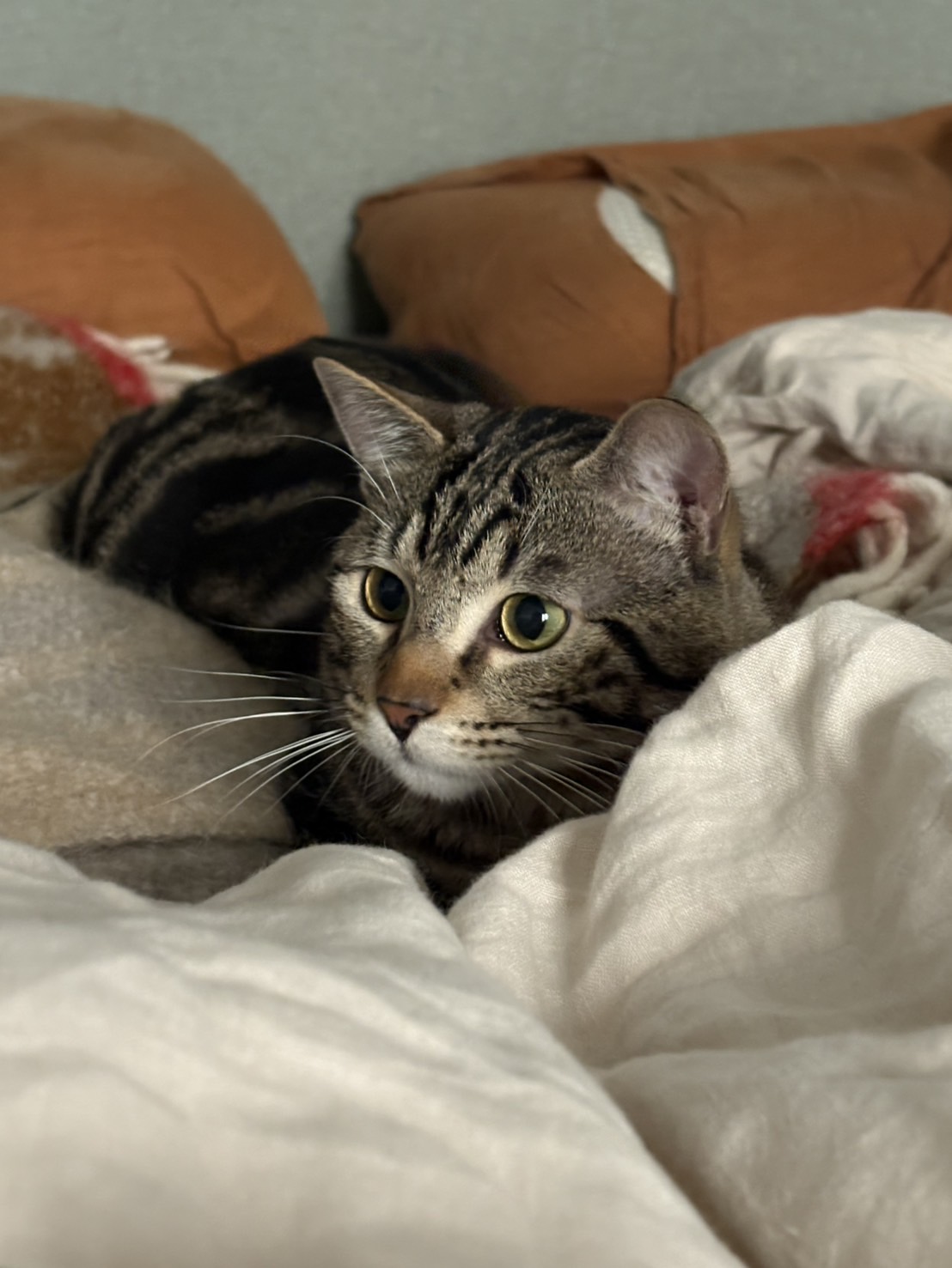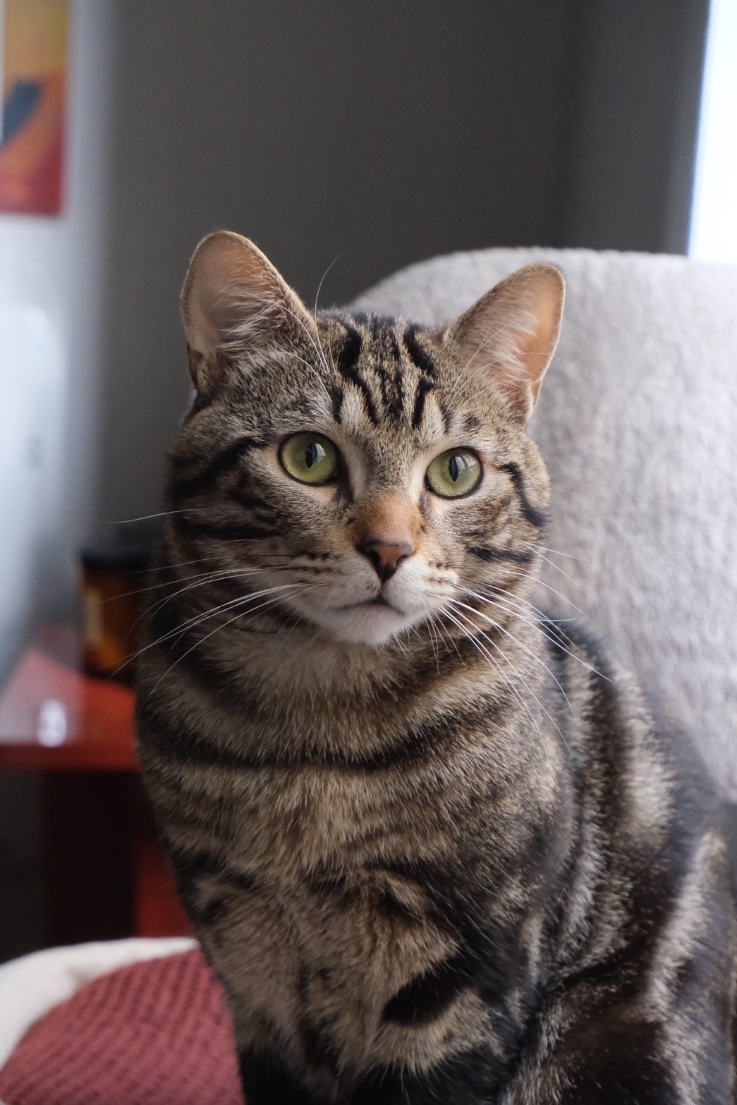 Caractère : Très gentil, chat bien sociable qui s’entend avec ses congénères. Hadashi est un peu gourmand… et s’intéresse à tout ce qui se passe autour de lui. Actif, regarder par la fenêtre lui plait beaucoup ainsi que jouer et se cacher dans des endroits insolites. Il est proche de l’humain, c’est un super petit compagnon de vie.