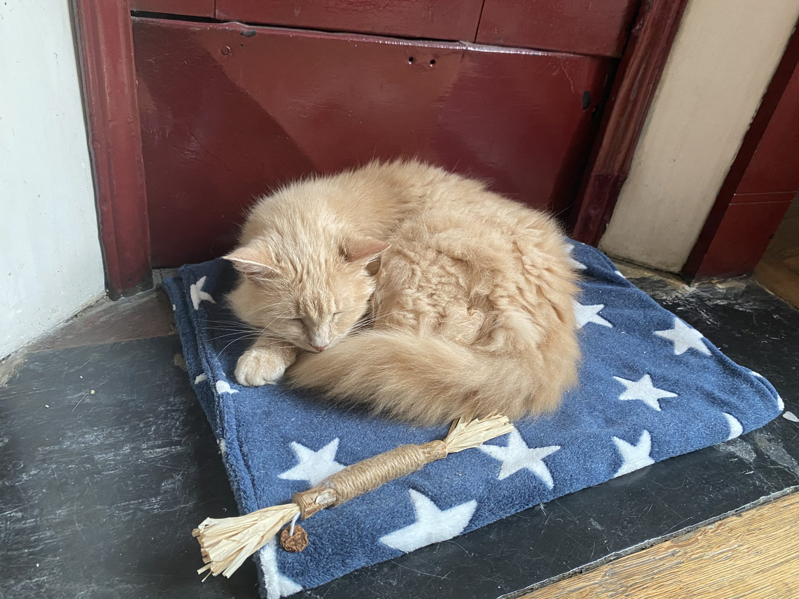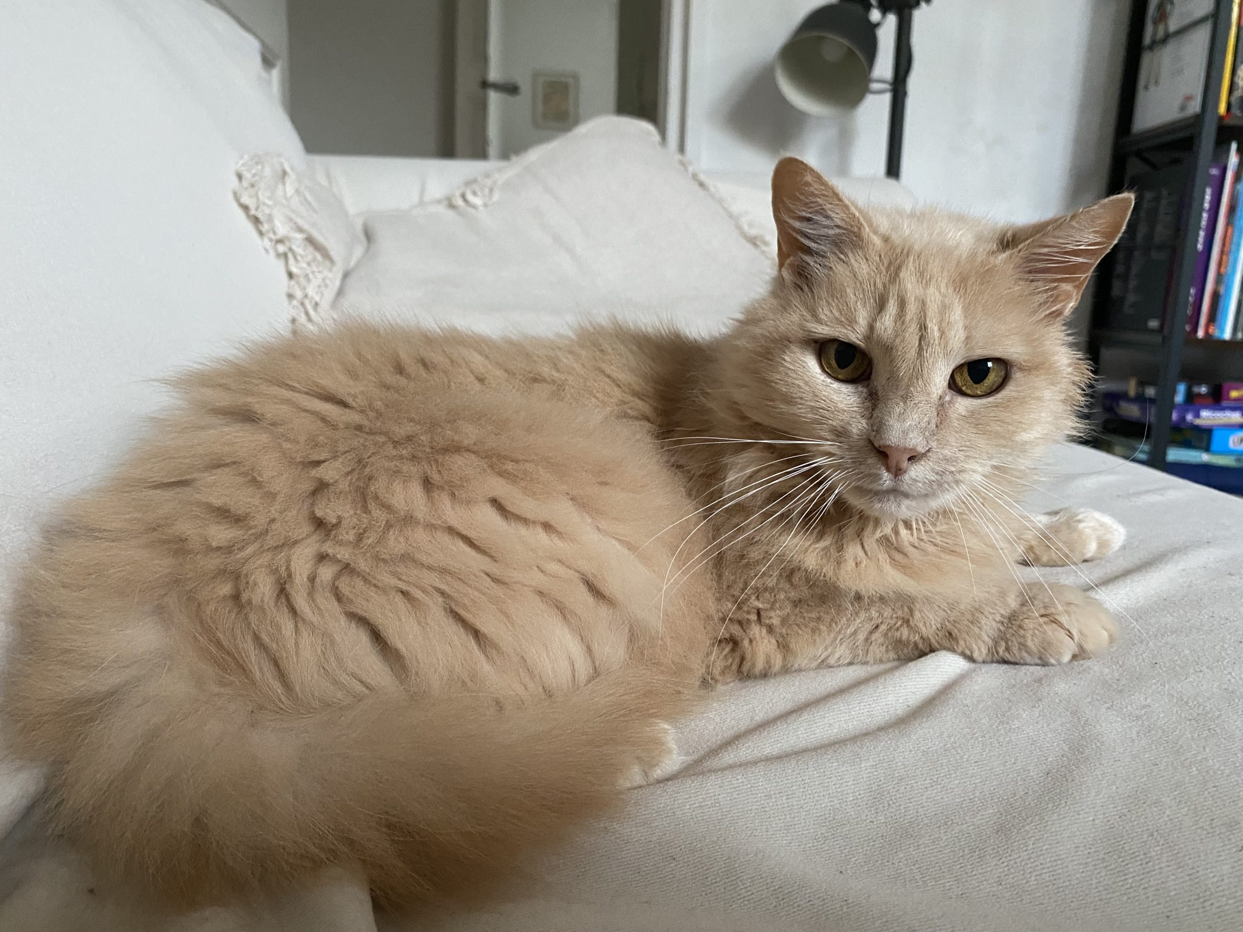 Caractère : Jasmine est une une chatte magnifique et adorable. Une fois qu’elle aura pris ses marques, elle ne manquera pas une occasion de se faire câliner et vous rejoindra avec plaisir sur le canapé pour réclamer des caresses et se frotter et blottir contre vous. Avec le temps, elle viendra même vous attendre à la porte pour avoir une petite caresse dès votre arrivée. Malgré son âge, Jasmine est également très joueuse et elle ne refusera jamais une occasion de jouer avec ses petites ficelles. Elle aime aussi s’amuser toute seule et se frotter contre son petit jouet en bois et raphia. Bref c’est un amour et cette petite boule de poils fera votre bonheur à coup sûr !