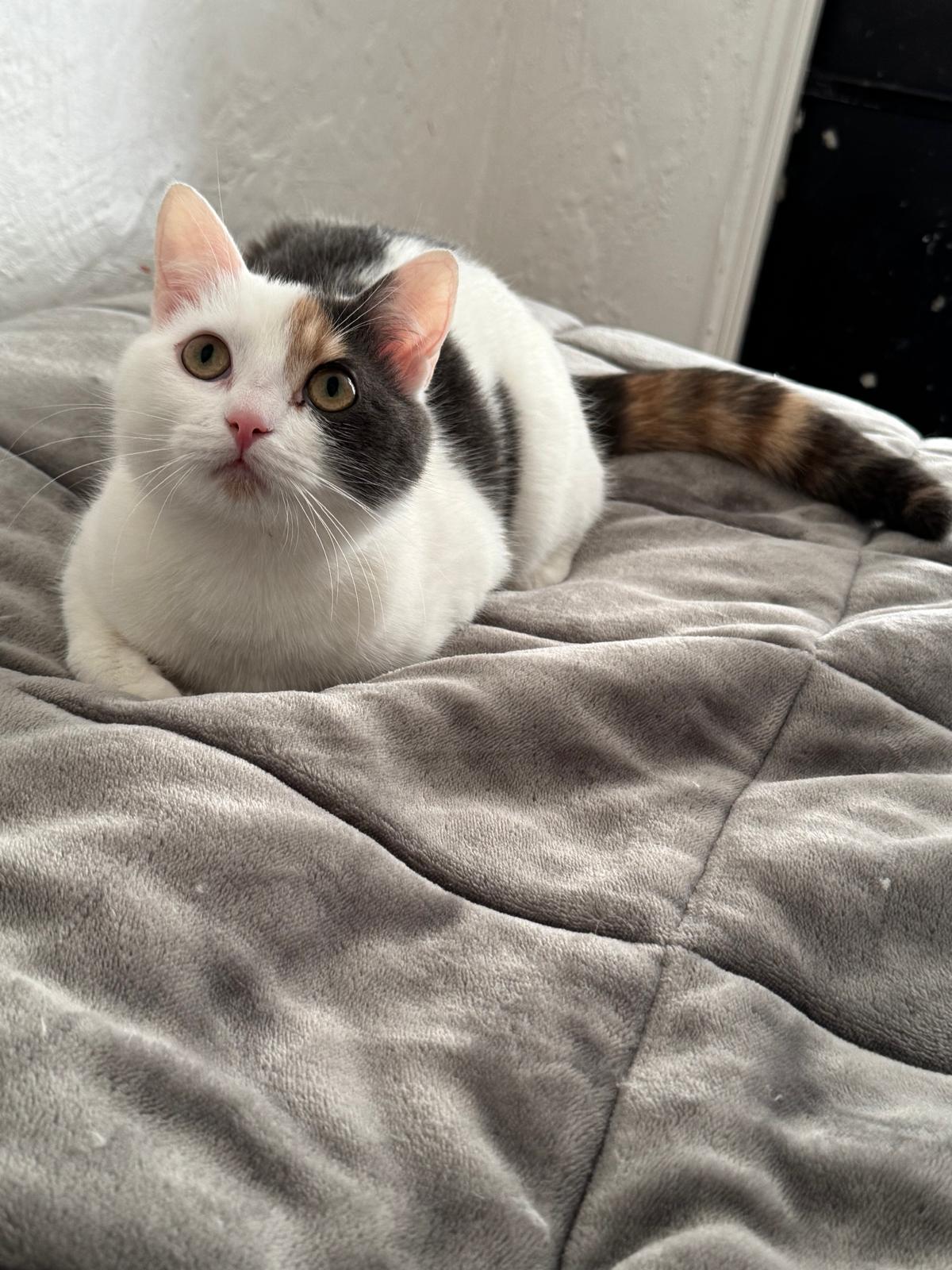 A adopter seule mais avec un autre chat pour le jeu OU avec sa soeur Cannelle. Adoptée en septembre 2025.