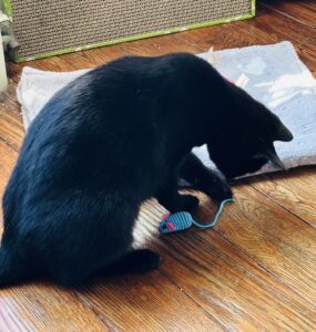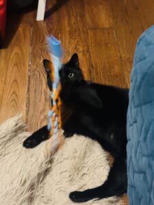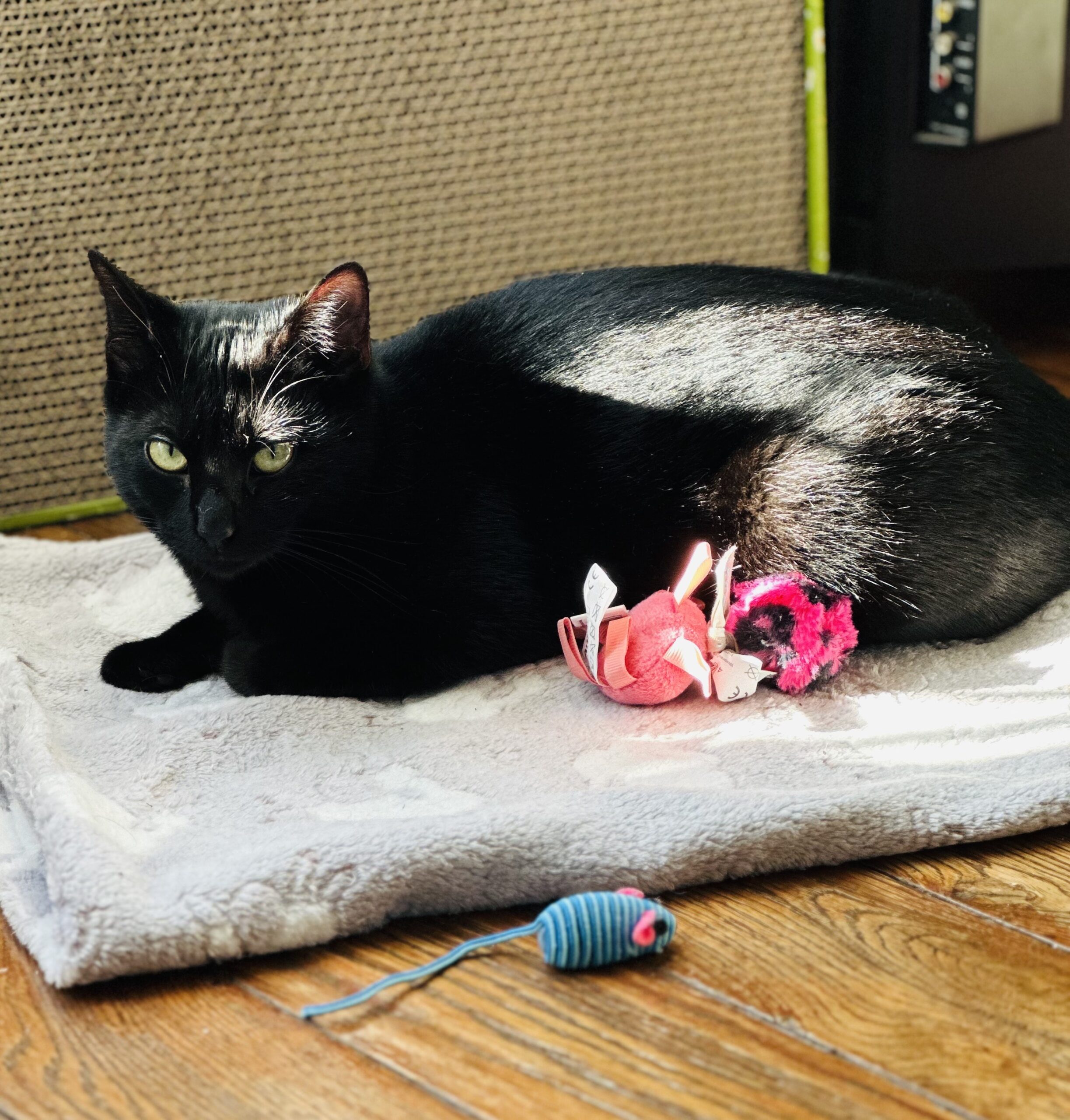 Caractère : Mélissa est une jeune chatte gourmande, elle a tendance à se précipiter sur la nourriture. Elle aime se reposer à l’écart et elle est très joueuse, elle adore qu’on la stimule en agitant ses jouets bien que parfois une simple balle de tennis peut faire office également de compagnon de jeu. Mélissa est parfois un peu fuyante et timide mais se laisse facilement porter dans les bras, elle adore ronronner et quand elle se sent en confiance, elle s’allonge au sol en attente de caresses. Mélissa aime également se détendre au soleil.