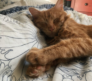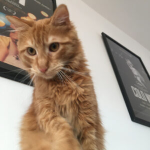 Caractère : Ruskin, surnommé « Kung-Fu Fou », est un jeune chat plein d’énergie et de curiosité. Joueur dans l’âme, il adore explorer, bondir partout et s’inviter dans chacune de vos activités. Il vous suivra à la trace, particulièrement intrigué par l’eau qui coule quand vous faites la vaisselle ou les odeurs qui s’échappent de la cuisine.