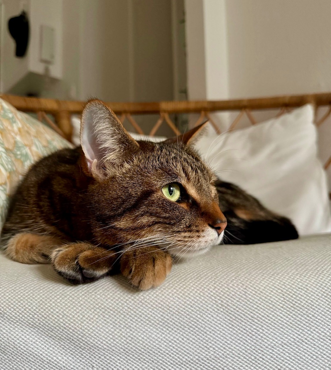 Il connaît son nom, comprend le non et ne passe pas son temps sur votre table de cuisine. C’est un très beau chat attachant, facile à vivre pour tous les âges.