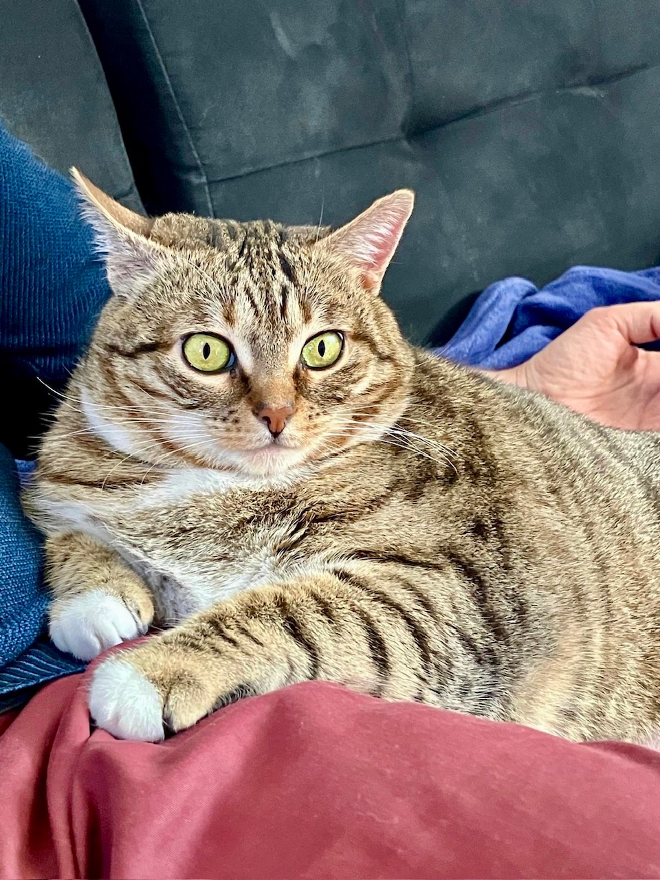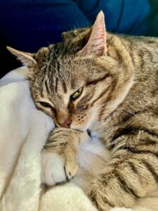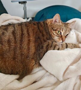 Placement idéal : Dans un foyer aimant, disponible, plutôt sans autre chat. Il faudra être patient et rigoureux pour poursuivre son rééquilibrage alimentaire en vue d’un amaigrissement progressif. Si vous avez des enfants (à partir de 8 ans) qui aiment les chats qui ne fuient jamais les câlins, Stella est la chatte idéale. Je n’ai jamais vu de chats aussi placides face aux papouilles. Un balcon sécurisé serait un plus.