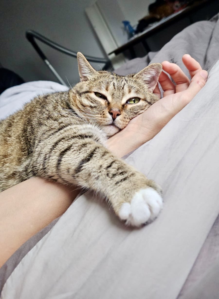 Sinon, sans surprise, c’est une gourmande. Elle sait se faire entendre quand c’est l’heure de manger. Une fois repue, elle redevient calme et câline. Toutefois, elle n’est jamais contre goûter la nourriture humaine. Toujours à l’affût du moindre rogaton, elle peut aussi faire preuve d’une étonnante souplesse pour dérober dans votre assiette si vous avez le dos tourné.
