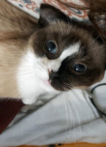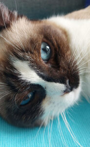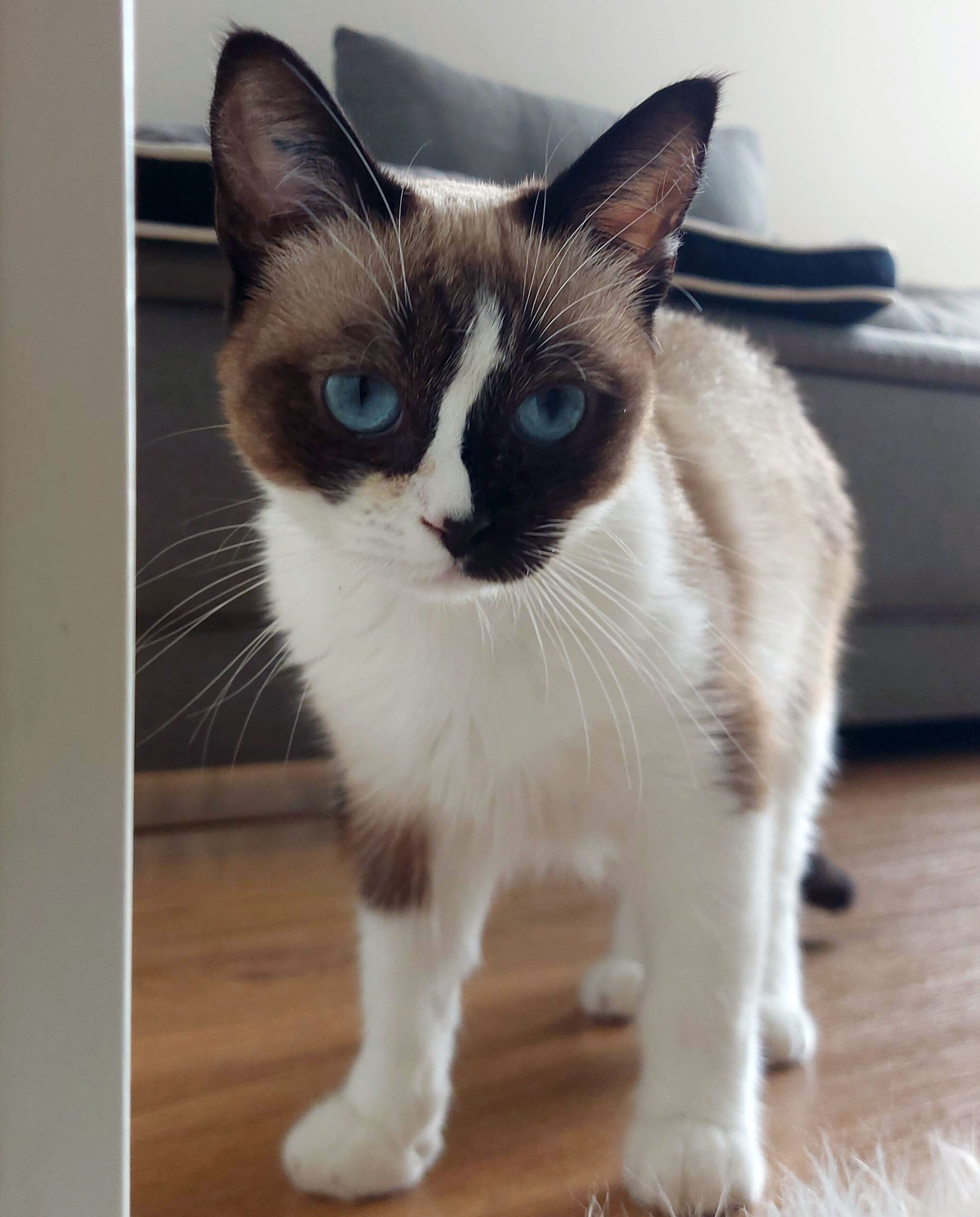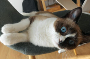 Caractère : Swali est une vraie boule d’amour avec de grands yeux bleus qui adorera vous suivre partout et être souvent dans vos pattes. Qui aime être portée, les caresses sur les joues, jouer avec les cannes à pêche, et courir après les balles. Mais en revanche qui n’aime pas les grands bruits, qu’on lui touche l’arrière-train et qu’on lui prenne « sa » place sur le canapé. Elle ne griffe pas, miaule très peu, c’est une petite poupée qui a appris à se détendre rapidement alors qu’elle était arrivée très apeurée. Elle aura besoin de calme et de douceur et de beaucoup de présence en journée pour qu’elle se mette en confiance. Pour son confort un accès à l’extérieur comme un petit balcon devra absolument être bien sécurisé pour qu’elle puisse profiter de l’air car Swali est une « princesse dans son monde », un peu naïve et qui n’a pas conscience du danger.