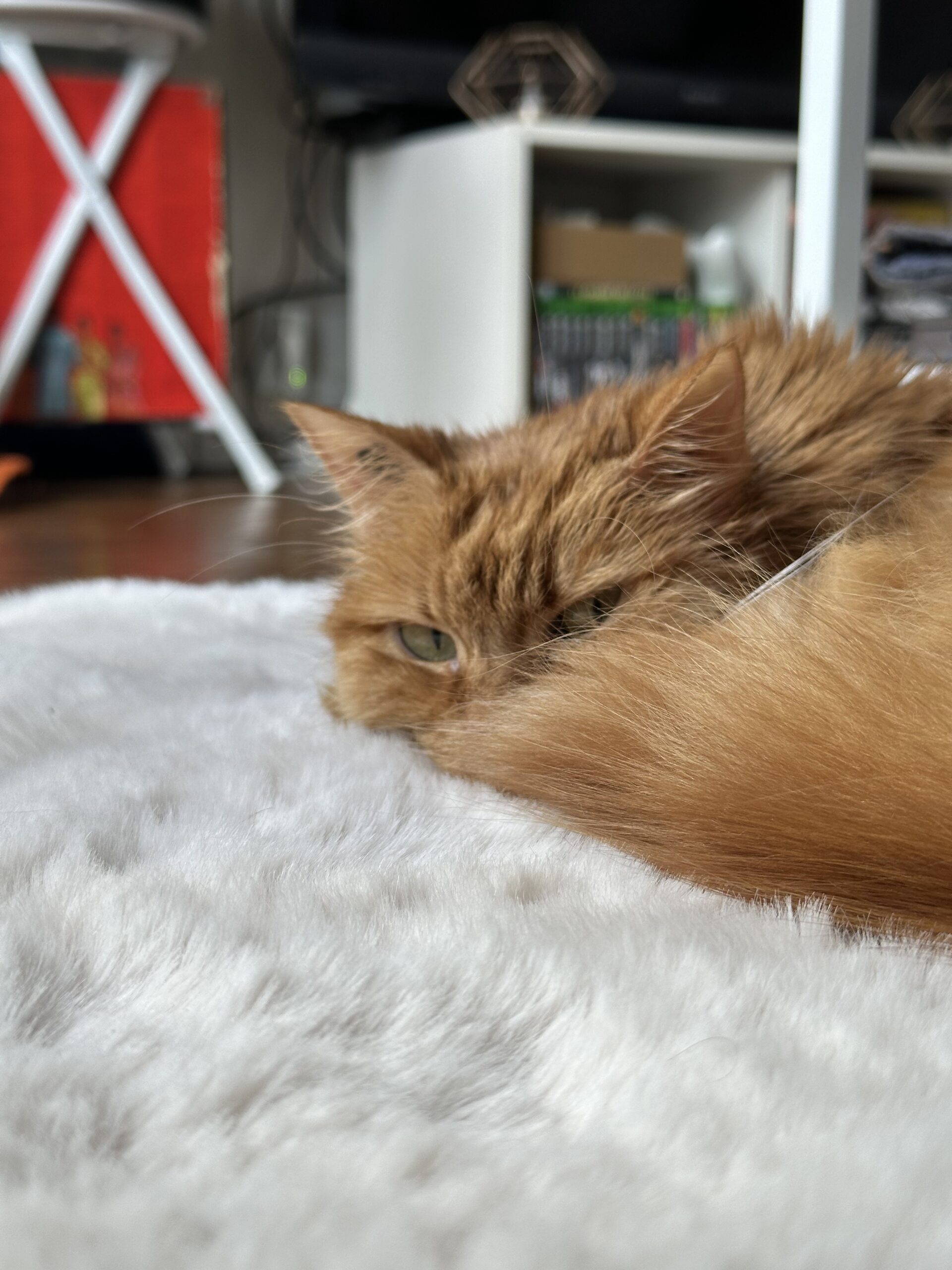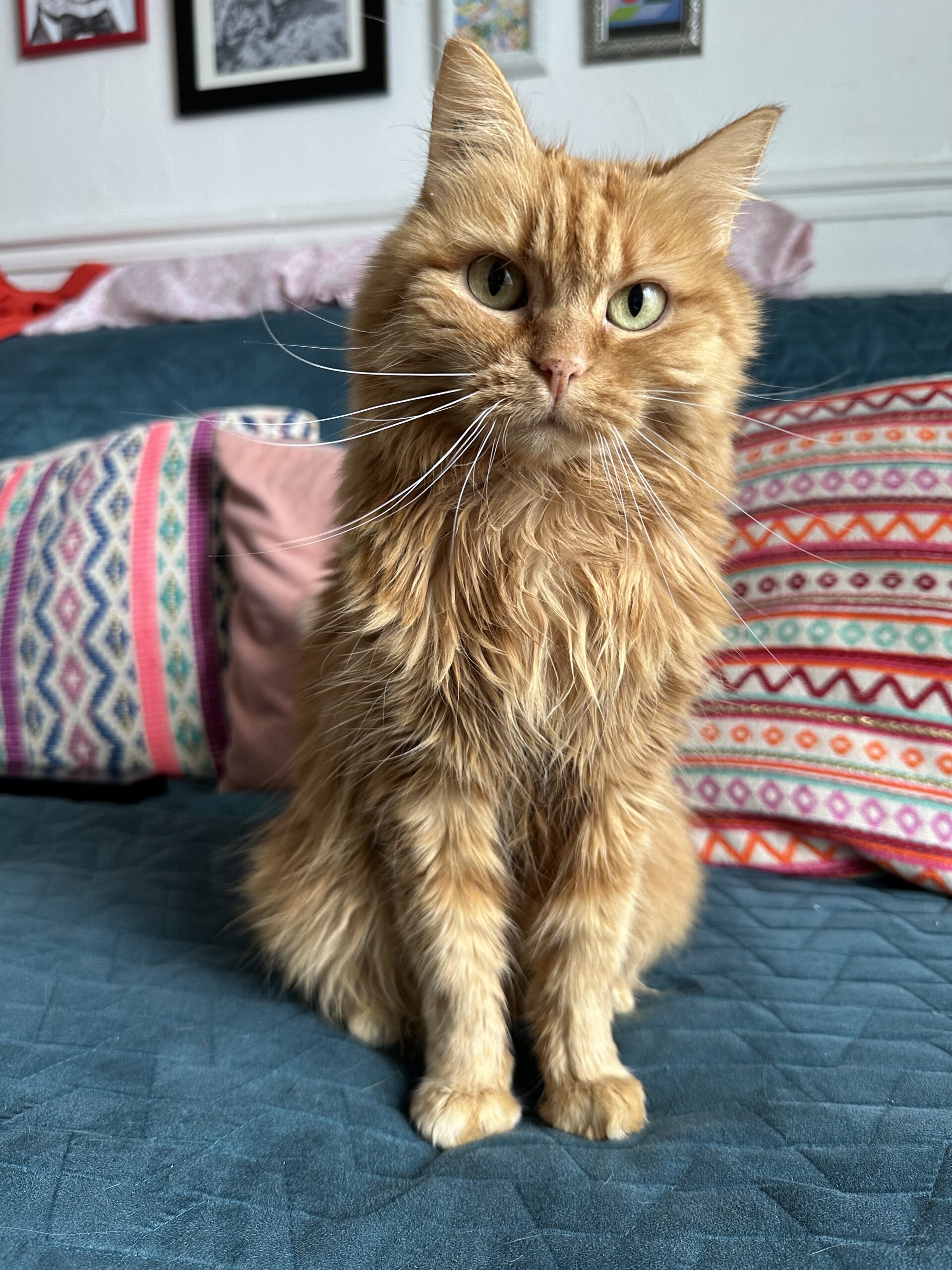 Caractéristiques physiques : belle minette rousse à poils mi-longs. Petit gabarit.