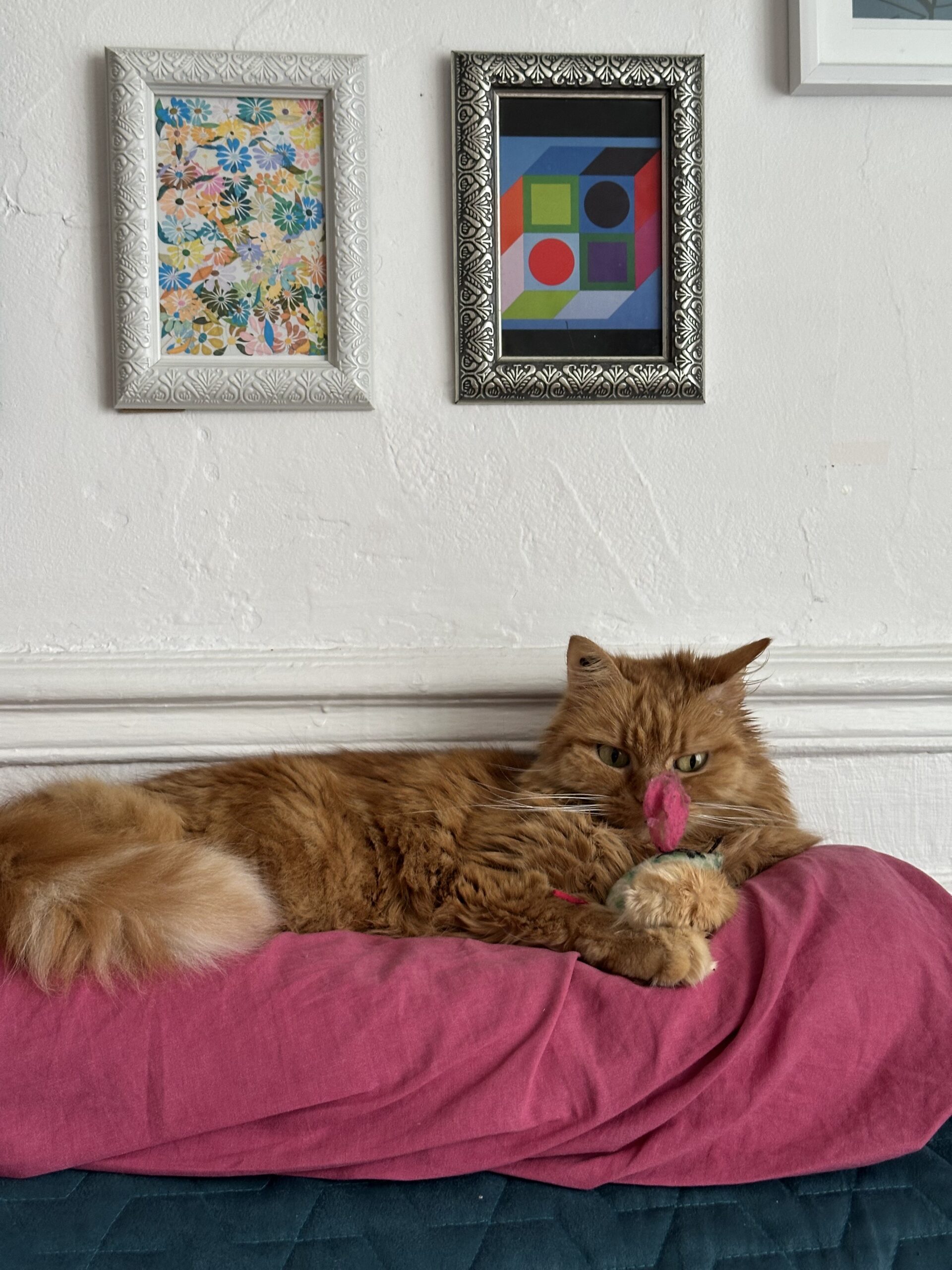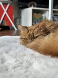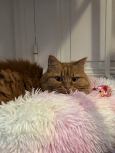 Caractère : Zoé est une chatte tout juste senior, qui a su garder son âme d’enfant, elle est joueuse, elle adore jouer avec ses rats multicolores, une fois le rat lancé, elle s’élance tel un fauve et elle aime nous ramener sa proie en guise de cadeau. Zoé est justement très sociable, elle adore dormir avec nous la nuit, elle vient se lover sur la couette à nos pieds. Zoé est également une petite gourmande, elle miaule uniquement dans la cuisine pour signifier qu’elle a faim et vient se frotter aux croquettes pour mieux montrer ce qu’elle désire !