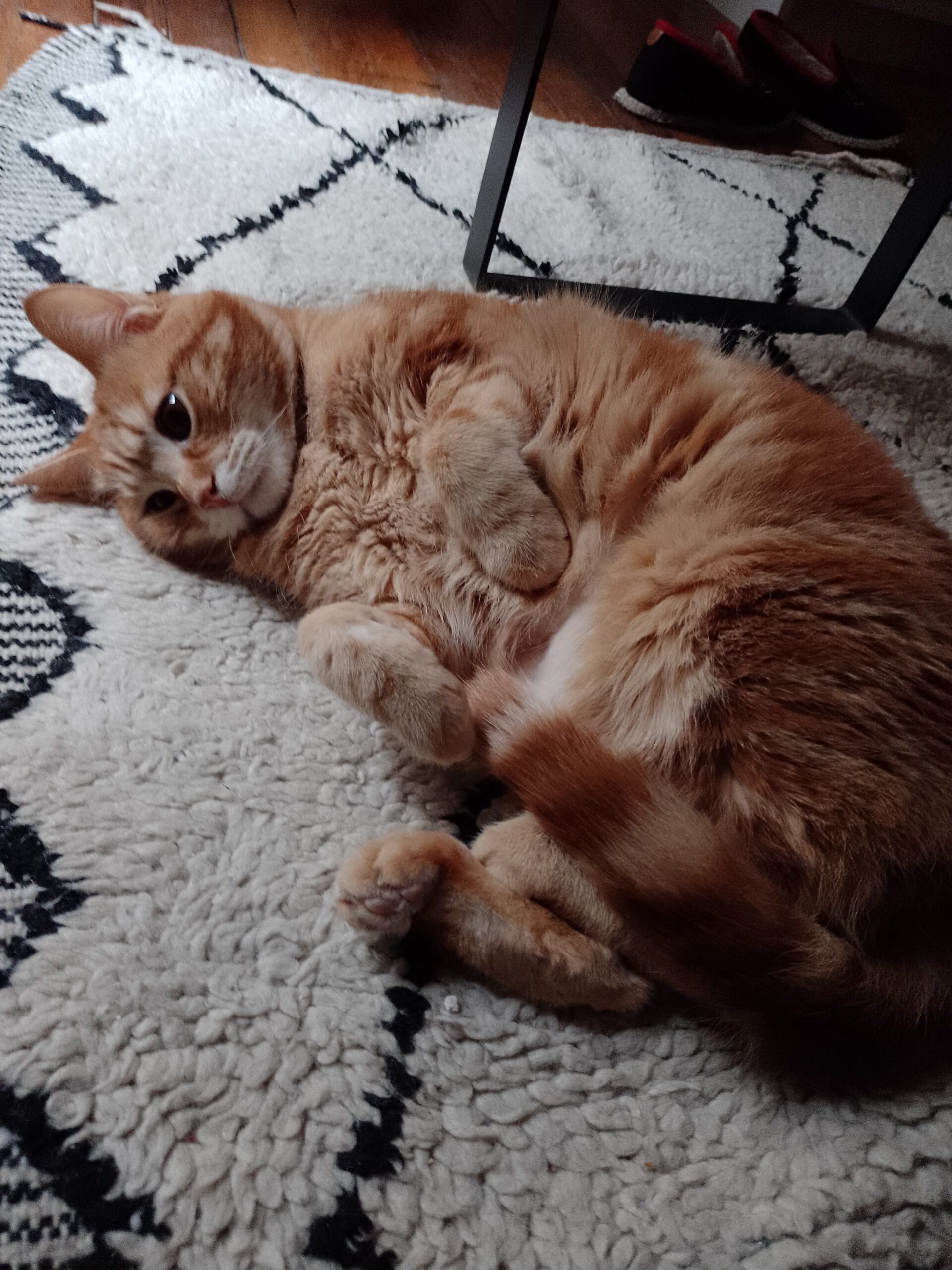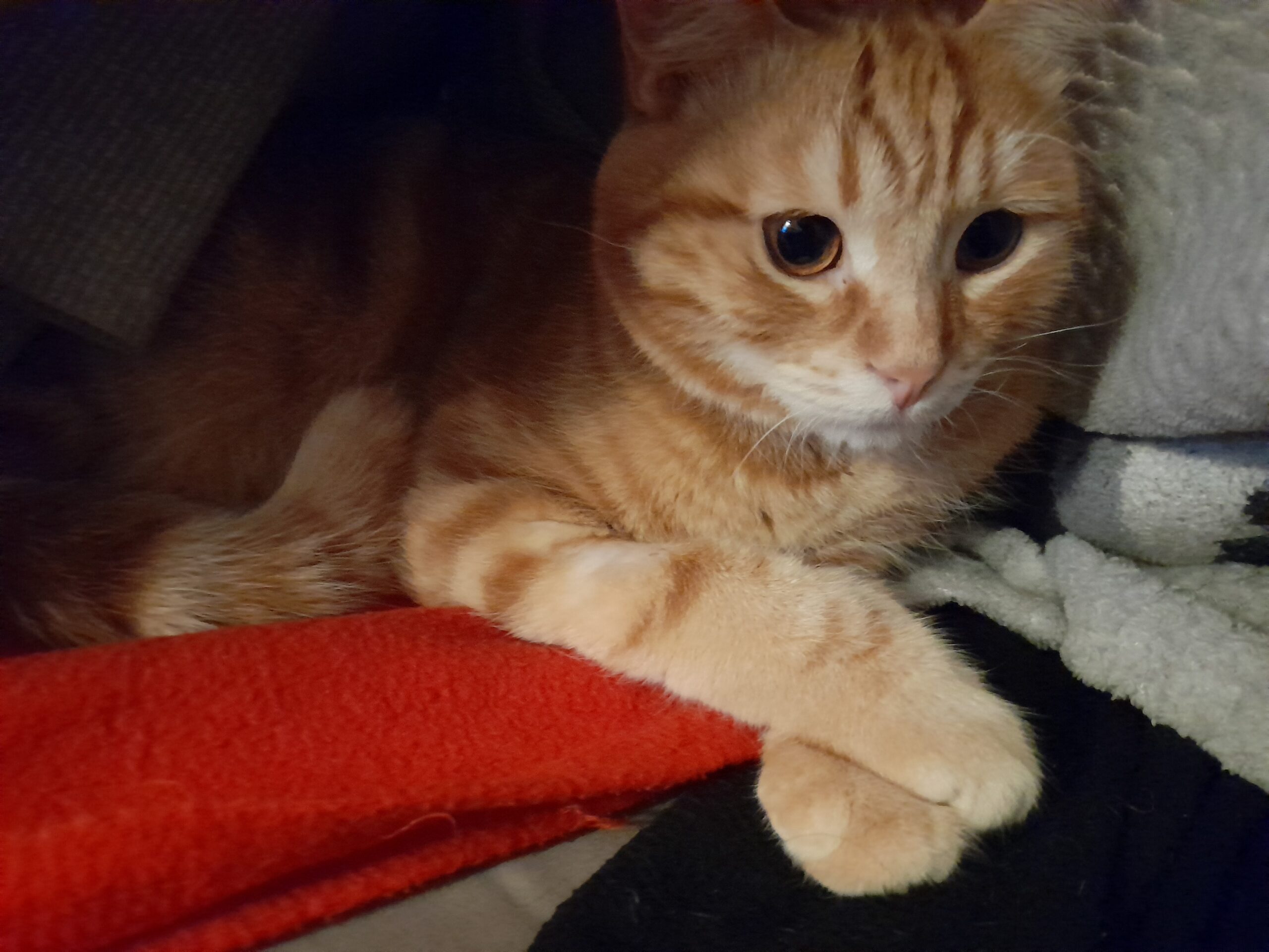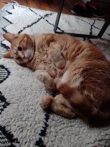 Testé Fiv négatif mais FeLV positif, castré, identifié par puce électronique, vacciné, souffrant d’une maladie auto-immune (anémie hémolytique), suspicion de soucis neurologiques (en cours d’investigation auprès de la clinique).