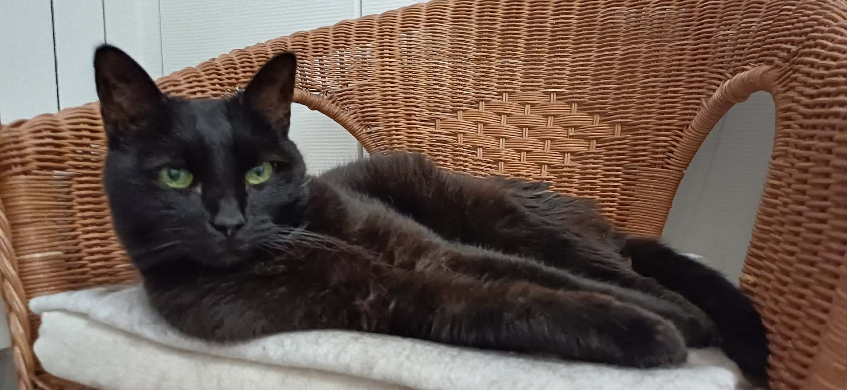Il est calme, doux et proche de l’humain. Il s’est adapté assez facilement à son nouvel environnement. Il est un peu gourmand et préfère l’alimentation humide en sauce aux croquettes. C’est un chat très gentil qui aime les câlins, qui est propre et ne fait pas de bêtises.