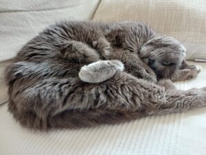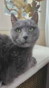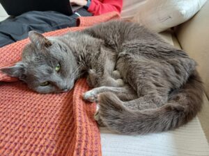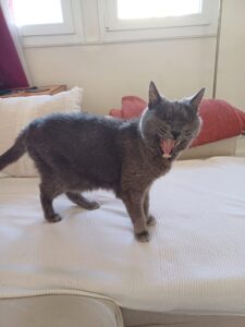 En bref : une petite mamie chatte vraiment très agréable à vivre, bien dans sa peau, sa tête et ses coussinets, qui mérite de terminer ses beaux jours entourée d’amour !
