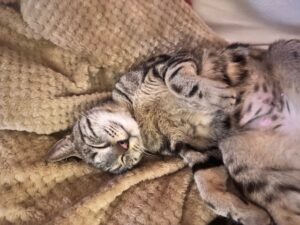 Caractère : Mia est une très gentille et tendre chatte, très sage aussi. Elle s’adapte facilement à son nouvel environnement et est facile à vivre. Elle adore son arbre à chat sur lequel elle aime regarder au dehors et s’est découvert une passion pour les plaids tout doux où elle patoune et découvre aussi le plaisir des jeux avec la balle. Elle est à l’aise et proche de l’humain mais aime aussi un peu de tranquillité. Elle est en bonne santé et parfaitement propre. Un peu gourmande aussi… Elle attend un foyer chaleureux et aimant.